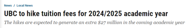 又要涨学费了!在加拿大读书主打一个没有性价比! 学费贵、生活成本高,真的遭不住! 但是,就加拿大全国自己相比,哪些学校最便宜呢?你肯定想不到,多伦多一所知名学校还上榜,并且跻身前三甲! 加拿大UBC大学将从五月起增加本地和国际留学生的学费。而同在BC省的西蒙菲沙大学(SFU)和维多利亚大学(University of Victoria)也在同时宣布要增加留学生的学费。 ![]() ![]() 图源:温哥华太阳报 UBC负责招生服务和注册服务的副校长Rella Ng在发给学生的一封电子邮件中表示,所有本地学生都必须额外支付2%的费用,而国际留学生则需要比2023/2024学年多支付2%到5%的费用。 此次涨学费将于2024年5月1日在UBC温哥华和奥肯那根校区生效。 5%的涨学费将适用于一些新入学的国际留学生。继续就读的国际留学生的学费将上涨3%。 根据UBC的一份报告,在2023/2024学年,国际留学生攻读文学学士学位一年的费用为$45,000加元,远高于西蒙菲沙大学($33,000加元)和维多利亚大学($30,000加元)。2024/2025学年,一年级国际留学生的学费将增至$47,250加元。 相比之下,一名本地学生在2023/2024年攻读文学学士和理学学士课程的费用为$5,900加元,低于西蒙菲沙大学和维多利亚大学的相同课程。 报告指出,维多利亚大学计划将国际留学生的学费提高5%至6.75%。 ![]() 图源:维多利亚大学 而西蒙菲沙大学正在考虑将国际学生的学费提高4%。 ![]() 图源:西蒙菲莎大学官网 UBC的学费上涨预计将在下一学年带来$2700万加元的额外收入。 据BC省政府称,根据目前最新数据,2021-22年专上院校有176,160名国际留学生。其中81,545人就读于公立专上学校,94,615人就读于私立专上学校。 加拿大“最便宜”大学排行榜出炉 前三甲居然还有多伦多有许多报告可以帮助学生们选择加拿大的大学。加拿大最著名的报告是麦考林(Maclean)排名和泰晤士报高等教育排名。 麦考林将2024年多伦多大学、UBC大学和滑铁卢大学列为前三名。 泰晤士报高等教育排名将多伦多大学、UBC大学和麦吉尔大学列为2024年最佳学校。 但Casivoo最近推出了一项“最具性价比”大学排名。它根据最低的学费、最高的毕业率、最低的生活成本以及奖学金的数量和价值,对100所大学进行了排名。 ![]() 图源:Casivoo 纽芬兰纪念大学圣约翰分校(Memorial University of Newfoundland)位居第一,得分为76分。 加拿大本科生、研究生和国际留学生的最低学费分别为2,760加元、1,905加元和3,222加元,为加拿大最低。当地的租金和公共交通等生活成本也较低。 曼省的布兰登大学(Brandon University)紧随其后,得分为75.46。 多伦多约克大学排名第三,得分为66分。约克大学研究生享有加拿大最便宜的学费,本科生学费位居最便宜前十名。约克大学还提供有竞争力的经济援助,在奖学金数量方面排名第九。 本拿比西蒙菲沙(SFU)大学排名第四,得分为64.83。学费,尤其是研究生的学费性价比很高。SFU提供的奖学金数量高于其他院校,排名第13位。 曼尼托巴大学温尼伯分校排名第五,得分为62.65。其本科生学费是最低的,研究生学费低于平均水平。温尼伯的租金、水电费、交通和休闲成本也获得了高分。但其奖学金与其他大学相比略有欠缺。 魁北克省的舍布鲁克大学以62.62分排名第六。其本科生享有最低学费。其毕业率位居全国第二。近十分之九(88.2%)的学生在七年内获得学位。 萨斯喀彻温大学排名第七,得分为61.49。本地和国际留学生研究生的学费位列最合理的前五名。萨斯卡通的公共交通和租金成本低于平均水平。 蒙克顿大学排名第八,得分为60.98。它为国际留学生提供全国最便宜的本科生学费,并在研究生中名列前十。 萨省里贾纳大学排名第九,得分为60.61。它在研究生费用以及休闲、交通和租金等基本费用方面得分特别高。 蒙特利尔康考迪亚大学(Concordia University)排名第十,得分为60分。当地研究生和本科生的学费排名第二。 而多伦多大学……不说了……我的先去擦擦眼泪…… 学费一直涨,你有没有想过再读书找一个“性价比”高的学校呢?欢迎留言交流啊! |