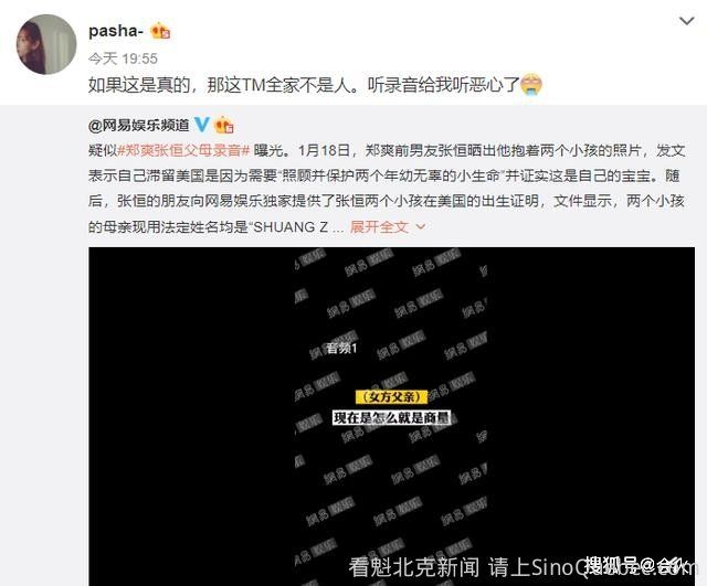 1月18日,央视知名主持人妻子在社交平台中的转发了郑爽全家弃养孩子的视频,并怒斥郑爽全家不是人,录音让人觉得非常恶心。 2013年尼格买提跟帕夏古丽结婚之后,女方一直都非常低调,这次直接针对郑爽一家录音发表大胆的个人言论,实属罕见行为。