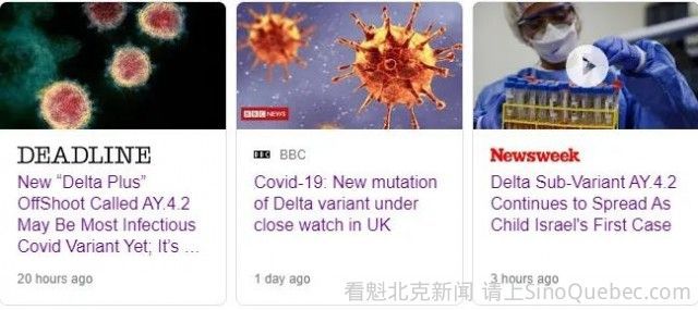 新冠Delta 变种搅起的北美第四波疫情,目前形势仍未明朗,虽然有疫苗保护,但能不能遏制新冠疫情,也要有赖于有没有新的变种病毒的出现。 但是,新变种病毒,可能真的要来了。。。。。。 这几天,一种叫”AY.4.2“的Delta加强版(Delta Plus)变体正占据媒体头条。 高传染性 Delta 变体的一种新的更具传染性的子变体开始引起人们的关注,特别是在英国,该变种病例再次上升。 根据最新的英国政府数据,这种被称为 ”AY.4.2“ 的变体占 9 月最后一周所有基因测序新病例的 6%,并称此变体的传播正在英国“扩大”。 加拿大公共卫生局也于周二证实,这种被称为“Delta plus”的变体已进入加拿大,自 7 月以来已确认了 9 例病例。 AY.4.2,也称之为“Delta Plus”, 但专家表示,该变种,但尚不清楚 AY.4.2 是否会像原始 Delta 菌株一样成为令人担忧的变种。 目前,这种变体尚未被视为受关注的变体或正在调查的变体 ,以及相关的风险级别。 英国卫生部于上周五发布的一份新报告表明,Covid-19 Delta 变体新分支AY.4.2的传播正在上升。 根据BBC的说法,英国卫生部称今年 7 月首次发现这一病例,但到 9 月 27 日的第一周内,检测 Covid-19 样本发现 AY.4.2病例就增长到 6% 。