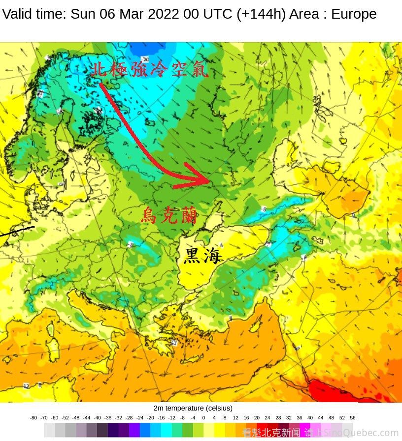 乌克兰和俄罗斯在白俄边境的谈判结束,暂无结果的双方已各自返回磋商,预备进行第二次谈判。中央气象局长贴出一张天气预测图,让网友认为「俄罗斯若后勤补给被乌克兰民兵截断,这场雪将掩埋俄的前行大军。」 ▼中央气象局长在图上画了一个红箭头,标示强冷空气的路径。(图/郑明典脸书) 中央气象局长在脸书贴出欧洲中期天气预报中心(ECMWF)的预测图说,北极强冷空气南下乌克兰北方,时间点在3/5前后。他并在图上画了一个红箭头,标示强冷空气的路径。 对此,许多网友留言,「天气是站在守方这边的」、「有主场优势的不怕,怕的是要靠补给的,当初希特勒就是死在天气上,冰雕连再来一次」、「俄罗斯若后勤补给被乌克兰民兵截断,这场雪将掩埋俄的前行大军。」 |