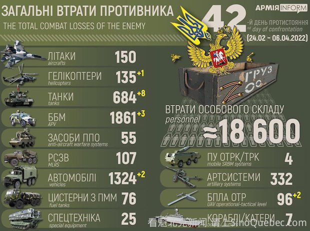 根据多家国际媒体整理。 - 俄军在乌克兰布查(Bucha)镇大量屠杀平民的事件被曝光后,欧洲各国继续采取外交手段抗议俄罗斯,希腊选驱逐20名俄外交人员,继意大利、德国、西班牙、波兰、瑞典、立陶宛等国之后,葡萄牙和罗马尼亚各驱逐10名俄罗斯外交官。 - 继布查镇之后,在乌克兰多个曾经被俄军占领的城市发现大量平民死亡和失踪。 - 罗马教宗Pope Francis谴责俄军在乌克兰布查镇对平民的大屠杀,并称联合国不称职。 - 美国宣布向乌克兰追加1亿美元的安全援助。 - 泽连斯基在联合国安理会上视频讲话,列举俄军在乌克兰屠杀平民的罪证,并呼吁联合国要么采取行动,要么解散。 - 最新民调显示,乌克兰人95%认为能战胜俄罗斯,91%支持加入欧盟。 - 哈薩克斯坦宣布不承认乌东两个独立州。 - 乌军防空部队在4月5日击落8枚俄军巡航导弹。在前一天乌军击落一架俄军先进战机苏凯-35后,俄军战机现在只能躲在白俄罗斯境内向乌克兰目标发射导弹。俄军一架直升飞机向乌军投诚,飞行员获得50万美金的奖金。 - 乌军公布了俄军在乌克兰布查镇执行任务的俄军军官和士兵的名单和其它身份信息。乌方也公布了在白俄罗斯境内俄军从乌克兰抢劫掠夺的民用品寄往俄罗斯各地的发送人、收件人电话、寄送目的地以及急送物品的内容,寄送的物品多是家用电器、衣服、工具。 - 乌方公布的俄军战损: