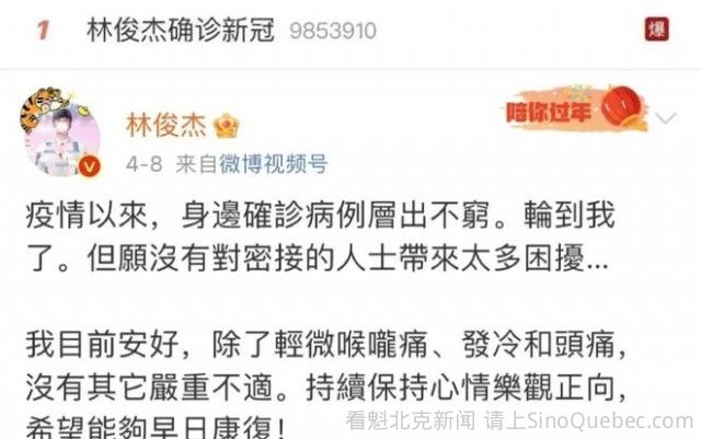 大家好,麦琪我来啦! 最近林俊杰确诊新冠上了热搜 他自己发了文表示目前安好,除了轻微喉咙痛、发冷和头痛,没有其他严重不适。还发了视频鼓励自己和大家,为抗疫加油。 看视频和文字,能感受到他的态度诚恳,但很多人因为他确诊新冠开始骂他