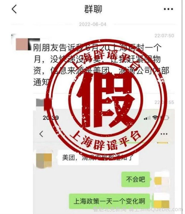 网传“上海再封一个月” 民众恐慌 中国上海6月1日解封后,不断的推进全面复工复产复商复市,但近日不少市民通过微信转传一则“6月20日上海再封一个月,没快递没外卖”的信息,引发多人恐慌。上海辟谣平台5日发文称,“传言不实”,强调全市(上海市)目前没有这个安排。 “上海再封一个月”的消息近日在大陆“微信”的各个群组广为流传,并称来源是美团、滴滴等大型公司的内部通知,因而引起恐慌,有大陆网友表示,“相信政府”,但也有人说“政策一天一变化”、“关怕了,也禁不起”。 据《联合报》报道,由上海市网信办主办的“上海网络(网络)辟谣平台”5日发文称,经向上海市新冠肺炎疫情防控工作领导小组办公室求正,该传言不实。 在此之前,上海卫健委主任邬惊雷3日曾表示,近期,上海静安、浦东、黄浦、徐汇、宝山等区陆续有社会面阳性感染者的报告,对上海来说疫情反弹风险依然存在,仍需时刻保持警醒,坚持“动态清零”总方针不动摇,严格落实常态化防控措施。 据中共国家卫健委5日早通报,前一日,全国新增本土确诊病例33例、新增本土无症状感染者55例。其中,上海新增6例本土确诊和本土无症状感染者16例。