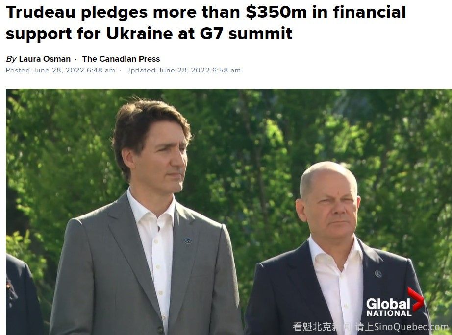 在德国举行的七国集团领导人峰会结束时,加拿大总理杜鲁多宣布向乌克兰提供更多资金——包括通过国际货币基金组织提供的2亿元贷款等援助,总额高达3.5亿元。 七国集团领导人承诺逐步淘汰或禁止进口俄罗斯煤炭和石油,以应对俄罗斯对乌克兰的入侵战争引发的能源危机,加拿大为此作出自己的贡献。 杜鲁多宣布除了向乌克兰政府提供贷款外,加拿大还将提供7500万元的人道主义援助,帮助乌克兰在本国和邻国的行动。 加拿大的援助包括提供实物食品援助、紧急现金和代金券、保护、庇护所和卫生服务。 ![]() 图源:globalnews 加拿大还将提供5200万加元的农业援助,包括移动谷物储存设备,以提高谷物储存能力,并帮助提供快速诊断测试和动物疾病监测,以便获得出口认证。 ![]() 图源:globalnews 加拿大还提供1500万元用于资助排雷工作,并为那些追踪侵犯乌克兰人权行为的人提供 970万元。 |