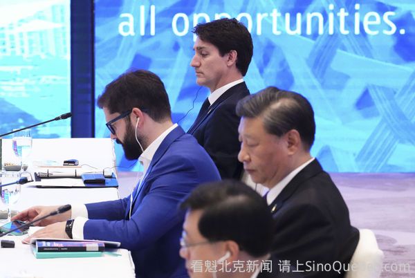 亚太经济合作会议(APEC)领袖峰会18日在泰国曼谷登场,由于大会的座位顺序是依国家或经济体的字母排序,因此中国国家主席习近平与加拿大总理杜鲁道位置相当靠近,2人中间仅隔着智利总统博里奇,而在上午闭门会议开始之前,短暂开放媒体拍摄的期间,外媒就捕捉到了3人之间的互动情况。