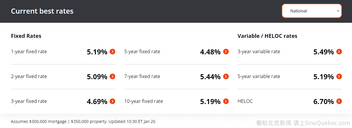 加拿大央行于本周三连续第7次提高基准利率之后,加拿大六大银行已经跟进,提高了最优惠贷款利率。 在央行加息25个基点后,央行目前的隔夜利率目标为4.5%。 加拿大央行的政策利率为其他商业贷款机构设定借款利率,这些利率会影响到房屋抵押贷款和消费贷款的条款。 图源:Global News 在周三的决定之后,加拿大六大银行:道明银行(TD Bank)、加拿大丰业银行(Scotiabank)、加拿大蒙特利尔银行(BMO)、加拿大皇家银行(RBC)、加拿大帝国商业银行(CIBC)和加拿大国家银行(National Bank)已经将最优惠贷款利率上调25个基点,至6.7%。 图源:ratespy.com 根据RateSpy.com的数据,这标志着加拿大最优惠贷款利率已经升到自2001年以来的最高点。 央行周三表示,相信通胀将“大幅下降”,在将政策利率上调了总共425个基点后,准备暂时停止加息。 |