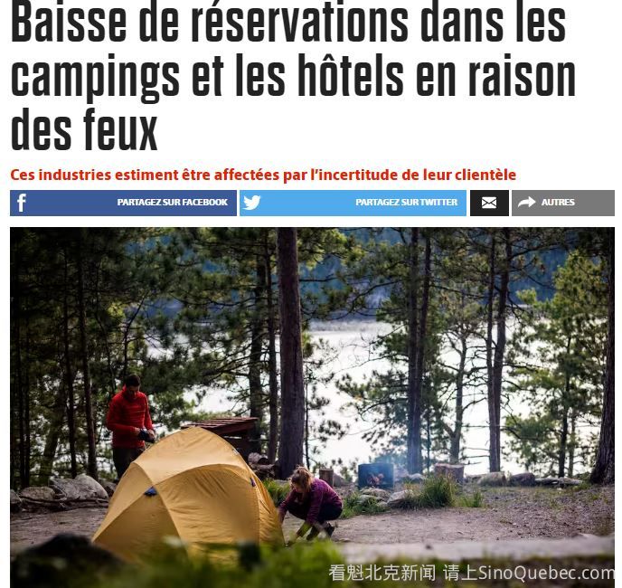 在魁北克肆虐一周多的森林大火正在为露营地和酒店的顾客降温,这些酒店的预订量正在下降。 代表800个机构的协会Camping Québec的首席执行官Simon Tessier解释道:"目前明显出现了多米诺效应"。 协会注意到,自从魁北克省北部和西部爆发毁灭性森林大火以来,预订也出现了放缓。 他表示:“人们对于哪些地方受到影响,哪些地方没有受到影响感到困惑。” 本周,由于交通禁止令,已有超过280个露营地关闭,其中20个不得不进行撤离。 根据魁北克酒店协会 (AHQ) 的说法,在酒店方面,某些地区的预订流量也出现了类似的下降,例如 Abitibi-Témiscamingue、Lanaudière 和 Mauricie 以北、Cote-Nord 和Saguenay–Lac-Saint-Jean。 即使在蒙特利尔和魁北克,酒店也感受到了部分客户的担忧。 AHQ首席执行官 Véronyque Tremblay说:“外地游客并不总是了解魁北克领土的范围。我们接到了几个客户和游客打来的电话,他们希望检查一切是否正确”。 然而,AHQ 和 Camping Québec 认为,要具体衡量这场灾难对其行业的影响还需要更多时间。 |