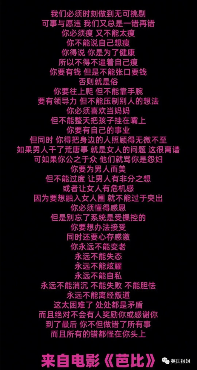 ![]() 故事讲述了贫寒出身的美国花样滑冰运动员唐妮娅·哈丁跌宕起伏的运动生涯,详说了她所经历的家庭暴力、性别歧视、运动丑闻等内容。玛格特再一次为了角色刻苦学新技能,扮丑增重。 ![]() 她第一次当制作人,片子就拿了奥斯卡最佳影片提名、最佳女主、最佳女配、最佳剪辑提名,饰演女主妈妈的艾莉森·珍妮拿到了奥斯卡最佳女配。 ![]() 从这时开始,六年以来,玛格特和团队继续寻找讲述女性故事的剧本。制作了电视剧《娃娃脸》《女佣浮生录》。 ![]() ![]() 还有2020年引起热议的《前程似锦的女孩》。电影讲述了女主为被性侵后自杀的好友复仇,不惜付出一切代价的心碎故事。 ![]() 电影震撼人心的台词和画面很多,揭示了现实生活中女性遭受的暴力和女性的处境。 ![]() (“你觉得女人最害怕的恶梦是什么?”) 玛格特的公司还参与了同一年上映的《猛禽小队和哈莉·奎茵》的制作。 ![]() 这一次,她找了女导演、女编剧,并且坚定地修改了小丑女的性感着装,尽管评分表现一般,但全球票房过了两亿美元。 ![]() 演技实力能打,制作实力不容小觑,经历“性感尤物”到实力派演员和制作人的转变,玛格特与《芭比》的缘分水到渠成。 ![]() 早在2009年,美泰玩具公司就想打造《芭比》真人电影,但剧本创作权几经易手,导演、制作公司、电影公司换了又换,始终没有打造出最好的版本。 ![]() 直到2018年,在奥斯卡奖靠着《我,花样女王》一战成名的制作人玛格特,引起了美泰电影公司的关注,主管制作人Robbie Brenner相中了她来演芭比。 ![]() 而玛格特顺势将自己身后的LuckyChap公司推到美泰面前,达成了合作,拿到《芭比》电影的改编版权。 ![]() 玛格特立刻找到导演了《小妇人》《伯德小姐》的格蕾塔·葛韦格,给了她自由创作权。剧本出来后,玛格特和丈夫倍受震撼。 ![]() 她在采访里坦言,虽然很喜欢剧本,但觉得争议敏感点太多,没有发行公司会冒这个险。但她最后还是决定赌一把,和格蕾塔一起找到华纳兄弟和美泰的高层,激情盎然地推销剧本,表示这是划时代的故事形式,会大卖特卖。 ![]() 正如她俩所料,高层看完剧本后,因为全篇都是“冒犯点”,都不知道从哪里批起。最后高层干脆“破罐子破摔”,让玛格特和格蕾塔放手一搏,《芭比》就此诞生。 ![]() ![]() 其实最开始玛格特想邀请加尔·加朵来演芭比,但加朵日程冲突,于是她自己上了。 ![]() ![]() 而选肯这个角色时,玛格特第一个想到的就是高司令。 ![]() 她在采访里说,看了高司令多年前在大街上给陌生人拉架的视频,觉得他肯定是大好人,是那种不会因为电影导演是女性,剧本有调侃内容而感到被冒犯,毫无“有毒男子气概”的男性。 ![]() 事实证明玛格特的眼光的确很敏锐,虽然去年海报刚曝光时,大家都对高司令的“油腻”肯造型大加吐槽。 但这几天看完电影后,很多观众都“真香”了。他恰到好处地拿捏了肯这个角色,Kenergy爆发。 ![]() 但更多的观众,还是被电影里直戳现实的台词所震动。将这样的故事推向观众的玛格特,值得响亮的掌声。 ![]() (图源:微博@矮周迅) 玛格特出道这15年,从寂寂无名的演员到被人凝视的性感尤物,再从刻板印象的盒子里跳出,成为自己事业方向的把控者。 ![]() 她接着将话语权扩大到更高纬度的叙事上面,做的每件事都那么有目的性,但每一个结果都有着很棒的意义。 ![]() ![]() 正如这位网友所说: “我爱爱爱惨了现在的文化领域:导演、制作、编剧、演员里有女性力量。 当然这远远不够,但玛格特说了‘我和导演知道要一起做点什么’。我好震撼,十年前可没这样的氛围,我真是太庆幸了!” |