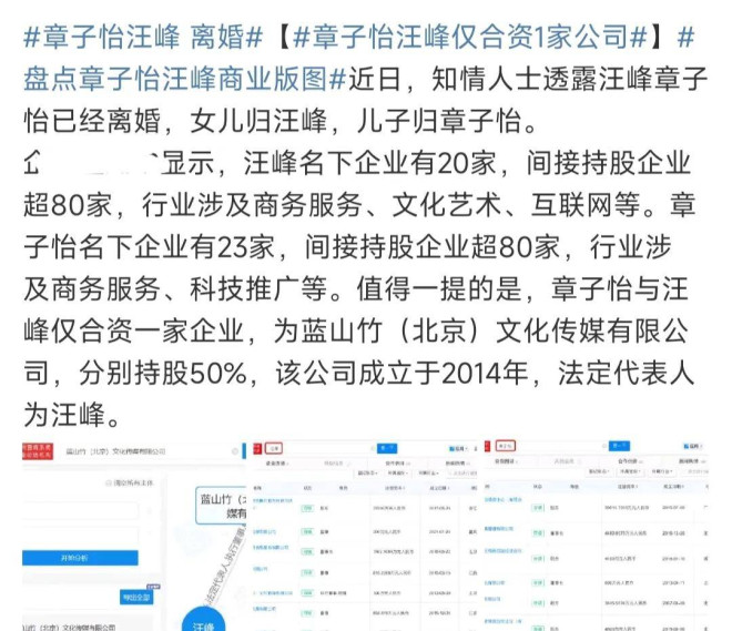 在节目中,汪峰和章子怡呈现的是一种老夫老妻,互相理解相互扶持的关系。 而在社交平台上,我们也确实看到,章子怡会在汪峰出新歌的时候,在自己的社交平台,表现出小迷妹附体的痴迷状。 ![]() 对待汪峰那个非婚生女小苹果,章子怡付出了更多的母爱,陪她旅行,与谈促膝长谈,蹲下来给她系鞋带…… 一个亲妈,也就不过如此了。 ![]() 明显在二人的婚姻续存期间,更多的把精力放到家里的那个人是章子怡,她放缓了自己事业发展的脚步,而汪峰出新歌、开演唱会,继续扩大自己的事业版图。 ![]() 早年就有演唱会的主办方,向记者感叹过,在内地做汪峰的演唱会,是稳赚不赔的。 可见,汪峰的事业根基,比外界想象中的还要扎实。 ![]() 复盘章子怡和汪峰的事业版图,我们会发现,结婚以后,章子怡的事业发展不及婚前,而汪峰则一路继续高歌猛进。 ![]() 章子怡和汪峰各自的名下,公司数不少。 其中,章子怡名下,有23家关联企业;汪峰有20家。经营的范围,包括影视文化、传媒和投资管理、文化科技等方向。 ![]() 章子怡名下的公司主要集中在北京、上海、深圳等大城市,而汪峰的事业版图里,他在江苏南京、江西南昌,都有自己的公司或者工作室,相对较杂。 ![]() 而在众多公司中,只有他们在2014年在北京成立的一家叫做蓝山竹文化的传媒公司,是归属于夫妻共同所有的,法人是汪峰,章子怡是监事,夫妻双方各自占股50%。 ![]() 让人玩味的是,这家夫妻共有的公司,总注册金额只有10万元,目前该公司并未注销,仍在经营状态。 不知道是离婚离得突然,没来及注销或者做变更,还是公司注册资本太少,可以在夫妻财产分割上忽略不计。 ![]() 如此看来,哪怕是汪峰和章子怡曾经在镜头前表现得再恩爱,他们在利益领域,都划分得非常清楚,各自不干涉对方的生意。 有章子怡的好友本山大叔的身边人爆料说,在总计35亿的夫妻共同财产里,汪峰一个人就拿走了28亿。 ![]() 此前,疑似章子怡的哥哥章子男在妹妹结婚的时候,就曾发过朋友圈吐槽汪峰,说他是一个在离婚时可以隐藏财产的男人。 不过,那都是往事了。 ![]() 毕竟,这次离婚声明,是章子怡和汪峰自己官宣的,声明里也很明确了,他们这对前任夫妻之间,没有是非对错,不能用普通的常理去评判。 ![]() 而娱记的最新爆料里也强调,章子怡和汪峰,财产原来有多少,就分回给对方多少,没有争议。 说到底,没有财产分割上的不清晰,没有什么争产大战,平静不出恶言的分手,相忘于江湖,记住曾经在爱里的美好,也是一种境界吧。 |