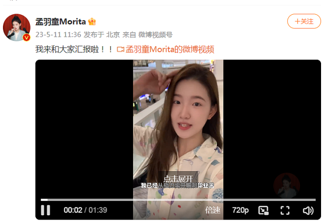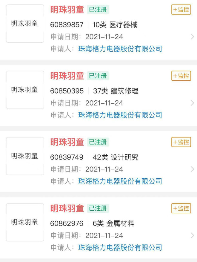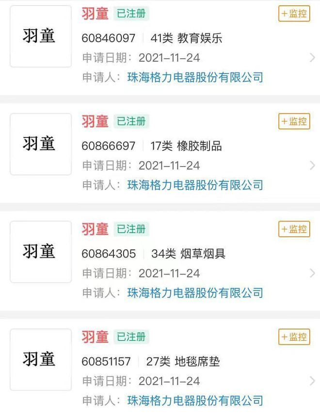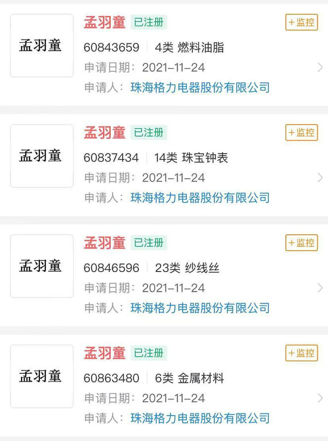 今年5月,董明珠网红秘书孟羽童离职引发全网热议,孟羽童称是准备读研,董明珠始终未正面回应过此事。 蓝鲸财经消息,11月6日,在接受广东卫视《财经郎眼》采访时,被问及网红员工问题时,董明珠正式做出了回应称:网红不网红看人品质,人在格力去外面做广告是不合规的。 ![]() 据企查查App显示,格力电器(000651.SZ,股价33.79元,市值1902.85亿元)曾于2021年申请注册多个“孟羽童”“羽童”“明珠羽童”商标,国际分类包括运输工具、日化用品、灯具空调等,目前多数商标状态为已注册。 ![]() ![]() ![]() 5月11日,孟羽童在个人微博发视频回应从格力离职。 孟羽童表示:“我已经从格力顺利毕业啦。我觉得无论是我还是大家,经历这样的一个人生变动吧,都没必要把它当成一个消极的事情,它只是我们人生某一个阶段的选择而已。” ![]() 孟羽童表示,如果没有格力的平台,没有董总,我什么都不是,刚毕业,普普通通的一个学生,就来到格力这么好的平台,有很多的成长空间和机会,又受到了很多的关注。 孟羽童直言道,最重要的是在董总这样的企业家身边工作,我觉得不光是教会了我怎么样去做事,更重要的是教会了我怎么样去做人,真的很感激,是发自内心的感恩。 孟羽童告诉大家自己的下一个阶段的任务,就是准备继续读书,然后申请研究生。 ![]() 孟羽童最后说,江湖路远,山高水长,我们人生的下一个阶段见。 据公开资料,孟羽童1998年出生,毕业于浙江大学2017级西班牙语专业本科。 在被保送进入浙江大学之后,曾多次参与综艺节目。2019年的《一站到底》、2020年的《神奇的汉字第二季》,都能看到她的身影。原本想打造“天才少女”的人设,却不料在一档职场关怀类节目中成功出圈。 2021年7月,在《初入职场的我们》节目中,孟羽童获转正名额,并得到董明珠盛赞,称其符合接班人标准。最终,也被董明珠收入麾下,成为她的秘书。 2021年11月,孟羽童在格力电器官方直播间进行了直播带货首秀,直播进行了4个小时,共上架24件商品,总观看人数超11.3万人,单场销售额约62万元。 2021年12月,一段格力电器董事长董明珠和秘书孟羽童一同现身中国制造业领袖峰会的视频曾引发人们关注和热议,董明珠在活动现场表示,“要将孟羽童培养成第二个董明珠。 |