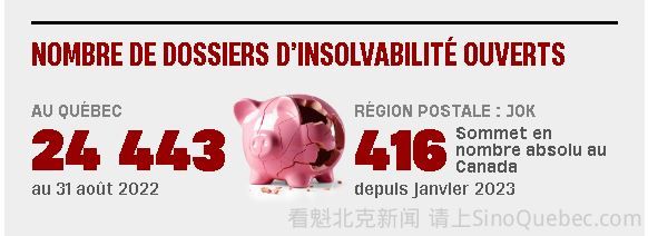 过去一年,魁北克省平均每天有78人申请破产。我们收集的数据显示,Lanaudière北部的情况尤其令人担忧,该地区被确认为全国破产案件最多的地区。 “[在]Lanaudière北部,Saint-Jérôme北部,[有很多人] 寻求社会服务,没有资产,然后宣告破产,” M. Roy & Associés办公室的清算专员Mathieu Roy评论说。 从绝对数量来看,覆盖Lanaudière 和Mauricie地区一部分的地理区域拥有加拿大最多的破产程序。 其中邮政编码的前几个字母是J0K的地区,包括Lanaudière的Sainte-Julienne、Saint-Calixte和Rawdon等城市,受到的影响尤为严重。 受影响最严重的地区 自 2023 年 1 月起的破产文件 已立案的破产申请数量 截至2023年8月底,根据破产总监办公室的数据,魁北克消费者破产程序的数量同比增长了17.5%。 尽管如此,趋势仍趋于改善。2019 年,魁北克省的破产率为 6.3,即每 1,000 名居民破产或向债权人提出申请的数量。加拿大的平均水平为 4.6。2021年,魁北克省的破产率降至3.3,而加拿大为2.9。 Pierre Roy et Associés 的行政总监 Jonathan Roy指出,从历史上看,魁北克省的个人收入低于安大略省,他认为这可以部分解释为什么这里的破产案更多。 他认为,安大略省和不列颠哥伦比亚省的房价较高,这一事实也解释了为什么这些省份的债务率较高,但破产案件却少得多。 他解释说,抵押贷款债务可以被视为“良好债务”,因为它是由资产担保的,这与信用卡债务不同。 |