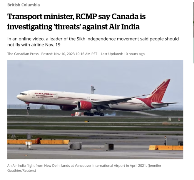 根据加拿大国家邮报(National Post)11月10日报道,英国称加拿大既有可能(very likely)受到恐怖袭击,特鲁多作出回应,称安保措施已加强、皇家骑警正在调查。 英国政府 11 月 3 日发出针对加拿大的旅行警告, 英 国在给国民的旅行咨询中称:“恐怖分子很有可能尝试在加拿大发动袭击。” 英国政府称:“袭击可能是不分青红皂白,包括在外国人访问过的地方。您应该随时了解周围环境,及时了解当地媒体的报道并遵循当地政府的建议。” 事情到底是怎么回事? 五天前,一段视频开始在网络上流传,警告人们不要在11月19日搭乘印度航空公司的航班,极度危险。 加拿大政府和皇家骑警已经证实他们正在调查可能存在的恐怖威胁。 加拿大交通部发言人Laura Scaffidi表示: “我们的政府对任何威胁都非常重视。我们正在密切调查近期在网络上流传的传言,与我们的安全合作伙伴一起。我们将采取一切必要措施确保加拿大人的安全。” ![]() RCMP(皇家骑警)也在周四早些时候确认正在进行调查,但拒绝进一步置评。 RCMP国家发言人Marie-Eve Breton表示:“皇家骑警非常重视所有对国家安全的威胁,包括在网上发表的威 胁。 ” 本周早些时候,印度要求加拿大加强温哥华和多伦多出发的印度航空公司航班的安全措施,但交通部并未说明将在这两个主要机场采取哪些措施。 ![]() 在社交媒体上流传的一段视频被印度多家新闻机构称为威胁,警告人们不要在11月19日搭乘印度航空公司的航班,因为这会危及他们的生命。 然而,该视频的发布者、锡克正义组织的Gurpatwant Singh Pannun在一份声明中否认这一消息是威胁,他表示自己只是呼吁人们抵制印度航空公司。 在视频中,Pannun用旁遮普语和英语混合发表讲话,呼吁锡克人在11月19日 “不要搭乘印度航空公司的航班”, 并宣布那一天将对该航空公司实施“全球封锁”。 ![]() CBC News找到了另一段在网上流传的视频,似乎也显示Pannun要求锡克人在11月19日不要搭乘印度航空公司的航班,因为“可能会有生命危险”。 ![]() Pannun在声明中说:“印度企业赚的每一分钱,对锡克人构成的生存威胁就多一分。”他补充说,虽然由侨民锡克人组织的哈里斯坦公投旨在挑战“印度对领土完整的主张”,但抵制的呼吁旨在打破“印度的经济霸权”。 根据《印度斯坦时报》周一的一篇文章,印度要求加拿大加强印度航空公司航班的安全,以应对潜在的威胁。 印度媒体报道称,印度驻渥太华大使Sanjay Kumar Verma表示:“我们将与有关加拿大当局共同处理涉及加拿大出发和抵达的印度航空公司航班的威胁。” 对印度航空公司的寻味尚未得到回复。加拿大全球事务部和公共安全部也没有置评。 周二,温哥华国际机场YVR表示,工作人员与“机场内外组成众多安保团队的各种机构保持密切联系。” YVR的一位发言人表示,他们已经注意到对印度航空公司的威胁, 并与联邦安全机构密切合作,安保措施已大大加强。 温哥华锡克教组织Khalsa Diwan Society 的主席Balwant Singh Gill表示,此威胁“非常严重”,尤其是自1985年印度航空182号航班爆炸事件以来,该事件一直在加拿大人的记忆中。 Gill表示,他希望加拿大政府或RCMP敦促社交媒体公司删除该视频。 他说:“这是公然宣扬恐怖主义……因此这确实应该从社交媒体上删除。”他对锡克人关于视频的信息没有具体建议,但表示每个人都应该认真对待这一威胁。 印度航空公司每周在温哥华和多伦多机场之间运营多次直达新德里的航班。 1985年6月23日, 两个在温哥华机场托运给印度航空公司的行李箱内装有炸弹,分别在全球两个不同地点爆炸。第一个在日本成田机场爆炸,导致两名行李员死亡。 第二个引爆在爱尔兰海外的印度航空182号航班,导致所有人——包括280名加拿大人——遇难。 卑诗省最高法院法官和随后的一次公共调查确定,这些爆炸是由巴巴尔·卡尔萨(Babbar Khalsa)实施的,这是一个BC省推动印度旁遮普邦的独立组织。最终有三名卑诗省男子被控谋杀。其中两人被无罪释放,第三人对过失杀人罪认罪。 |