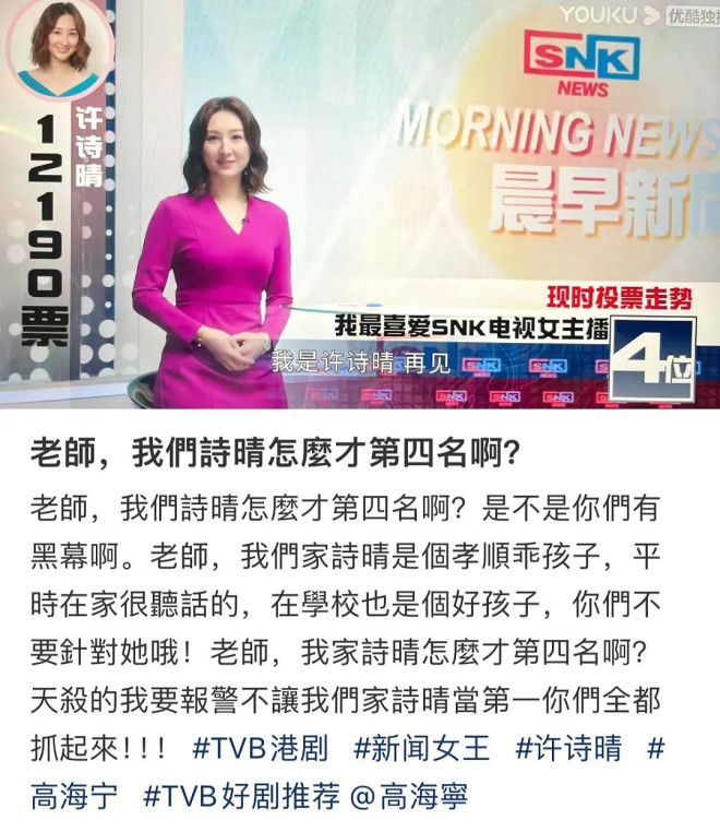 当所有人都不敢报“未经求证”的富商死讯时,她坦然地站出来,表示她来报,反正她已经“I have nothing to lose.” ![]() 结果她抓住了机会,果然更红了。 发现领导佐治给自己画大饼以后,果断用自己的优势和手上的把柄投靠Man姐,成功当上一周五天prime time news女主播。 她当众倒戈的那十几秒,看着佐治吃瘪她得意的表情,简直值得内娱小花逐帧复刻! ![]() 许诗晴在人前总是明艳的骄傲的,甚至有些嘚瑟的,但是她回到爸爸的身边,她才会透露出自己的脆弱和不甘。 ![]() 高海宁真的太会演,黄豆大的眼泪每滴都实打实的砸在了网友心里,引发了一波“我们家诗晴文学”,大家都把许诗晴当成自己亲女儿。 许诗晴因为没能播prime time哭了,她们要隔着荧幕给诗晴擦眼泪: ![]() 剧里投票没得第一名,她们要举报网站有黑幕: ![]() 好在后来许诗晴的结局超好,不只在事业上更上一层楼,还收获了真心爱人,否则我看这些许诗晴妈妈们要闹到SNK总部去了! ![]() 戏外的高海宁的人生,是许诗晴的Pro Max版本。 ![]() 她一开始也是靠身材和颜值出道的,21岁那年,在家人的鼓励下她参加了港姐竞选。 ![]() 身材高挑,白白净净的天使面容,真的好水灵,属于老天喂饭吃那一类的。 本来她是那届港姐前三甲的热门人选,可惜当时她因为一些谣言没能晋级,最终以第五名的成绩和TVB签约了。 在比赛的时候,她就已经展现出自己情商颇高的一面了。 高海宁的爸爸是香港人,妈妈是南京人,她的童年是在南京度过的,参赛时评委不怀好意地调侃她的出身。 ![]() 她愣了一下说:“不是,是缘分注定爸妈在南京这么美丽的江南相遇,然后有了我。” ![]() 真是大方得体又机灵。 TVB签下她之后,一开始并没有好好培养她,给到她的角色都是情妇、小三、狐狸精,堪称“渣女专业户”。 ![]() 这些角色都有一个共同点,性感、美得很有攻击性,高海宁根本不用去“演”,她站在那里就已经很有说服力。 本来身材对她来说是迅速走红的优势,但她自从出演类似角色以后,一直很难得到突破,观众对她的评价也不太好,一部分指责她没演技,徒有身材。 ![]() 另一部分则说嫌她身材不够好,脸也是靠整的,在镜头前显胖,所以她疯狂减肥,甚至有了抑郁情绪,导致脱发。 ![]() 讲真,高海宁完全不胖啊,她就是天生骨架大的类型,上镜会容易显胖,现实中这种身材走在大街上是大家会忍不住盯着欣赏的程度。 ![]() 不过好在高海宁在经历过抑郁之后很快就想通了,决定悦纳自己,享受生活的美好。 ![]() 在事业上,不论角色大小,都先沉淀自己,后来高海宁和佘诗曼合作的时候,阿佘告诉她:“在戏里没有一个演员是配角,你演这场戏,你就是主角,你演好了对整部剧都是有帮助的。” ![]() ![]() ![]() ![]() Cr.见右上角Logo 慢慢地她也接到了很多不同类型的配角角色,不再只是作为花瓶出现,大家也发现了她细腻的一面。 在《使徒行者》里,她饰演的卧底林希微,多重反转,向大家证明了自己的演技。 ![]() 到了《三十而已》,她把赵静语的落寞无奈,和对自己过往岁月的不甘心都演出来啦。 ![]() 而且她本人其实普通话超级标准,但在剧里她特意设计了港普口音,真的蛮细节的,一张口就让大家知道:这个女的,TVB来的哈哈哈哈。 网友都说,高海宁身上的美是一种富有生命力的美,一看就气血很足,月经规律的样子。 ![]() 这都是因为她已经有了爱自己的能力,平时工作很忙,闲下来她就到处去旅游。 找个小岛放空自己,她说:偶尔找个角落偷懒很重要。 ![]() 她的生命力,来自于对生活的热忱,尽情去做自己想做的事,2020年最后一天她去跳了滑翔伞。 ![]() “从此以后我不会再跟别人说我畏高,我不想用这两个字去束缚我自己。” 平时如果天气好,她坚持每天都晨跑,所以她肌肉线条清晰,美得很健康。 ![]() 如果刮台风,那就在家沉浸式作画,像是一次与自己内心的沟通。 ![]() 不开工的时候,想吃美食就尽情吃,胖点也没关系。 其实接到许诗晴这个角色的时候,正好是她上一部电影杀青,她出去放纵了一段时间,胖了点。 ![]() 不过她的风情已经刻在骨子里,和胖瘦没关系了。 在她的社交平台上,她晒了一段视频,高开叉露背装的黑色长裙,她就沿着海边走着,阳光洒在她的脸上,风吹乱了她的头发,她笑得满足又开心。 ![]() 配文是:好喜欢我自己。 |