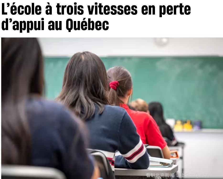 根据école ensemble运动委托CROP进行的一项民调结果显示,三速学校制度在魁北克的民意支持率正在下降。 三速学校指的是魁北克的三种教育体系: 1 私立学校(收费并设有筛选标准) 2 公立学校的选拔性特色项目(仅向部分学生开放) 3 普通公立学校课程 根据去年秋天对 2000 名魁北克人进行的这项调查,认为公立资助的学校不应根据学生成绩筛选学生的受访者比例,从 2022 年的 68% 上升到了 2024 年的 76%。 与此同时,认为私立学校的存在是不公平的,因为它们为更富裕家庭的学生提供了更多机会的受访者比例,在同一时期从 53% 上升到了 58%。 此外,认为所有学生都应该在同一个班级学习,而不论他们的学业成绩如何的魁北克人比例,从 2022 年的 53% 上升到了两年后的 63%。 école ensemble运动协调员Stéphane Vigneault表示,这些数据表明,魁北克现行的“三速教育体系”不再符合大多数人的价值观。 他认为,近年来围绕此议题的公共辩论加深了社会对教育体系不公的认识: “讨论得越多,我们越能清楚地看到系统中的明显不公。” 为缩小不同层次学校间的不平等,教育部长Bernard Drainville提出在所有公立中学创建免费的、包容性的特色项目,供所有学生选择。 然而,Vigneault 认为这一方案治标不治本,因为它仍然保留了选拔性特色项目,这些项目仍可能依据学费或成绩筛选学生,因此未能真正解决核心问题。 école ensemble 运动并不提倡取消对私立学校的资助,而是建议将资助比例提高至 100%,使其成为免费的、自治的学校,并要求它们像公立学校一样,不筛选学生,而是接收所在社区的所有学生。 这种“共同学校网络”的提议,借鉴了芬兰的教育模式,并在本次民意调查中得到了85% 的魁北克人的支持。