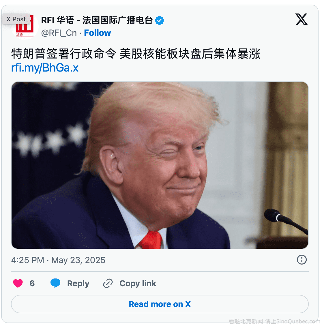美国总统特朗普5月23日签署了四项行政命令,据一位顾问称,这些命令旨在推动美国民用核能的“复兴”,目标是在未来 25 年内将核能产量翻两番。特朗普在椭圆形办公室的简报会上表示:“使用核电的时刻到来了“。特朗普还表示,会采取“非常迅速和安全”的程序,并特别希望对建造新核反应堆申请的审查不超过 18 个月。 加强燃料供应链可推动核能产业的发展。人工智能蓬勃发展,也让美国20年来电力需求首次增长。 美国内政部长柏根(Doug Burgum)表示,我们面临的挑战在于“生产足够的电力来赢得与中国的人工智能的决斗”。 白宫一位不愿透露姓氏的官员表示,我们希望在总统任期结束之前,也就是2029年1月前能够授权测试和部署核反应堆。 美国总统特朗普签署行政命令的目的是,通过简化新反应堆的批准监管流程,启动美国核能的生产,并指示能源部和国防部确定联邦土地以供核能部署,从而简化目前核能监管委员会的流程。美股核能板块盘后集体暴涨。 行政令的草案摘要显示,特朗普将再次动用美国《国防生产法案》,以美国在浓缩铀、核燃料加工以及先进反应堆组件领域“依赖中国和俄罗斯两国”为由,宣布国家进入“紧急状态”。 法新社报道,美国仍然是世界领先的民用核电国家,拥有 94 座运行中的反应堆,但它们的平均使用年限正在增加(42 年)。 法国拥有 57 座反应堆,仍然是人均核能拥有量最高的国家。该国于 2022 年宣布了一项新建 6 座甚至 14 座反应堆的计划,第一座反应堆预计将于 2038 年建成。 中国尤为活跃,目前其境内拥有 57 座反应堆,与法国持平,另有 27 座正在建设中。 俄罗斯仍然是发电厂的主要出口国,目前有 26 座反应堆在建,其中 6 座在俄罗斯境内。 |