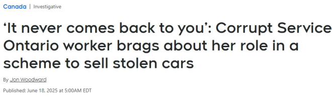 加拿大CTV新闻W5栏目的调查曝光,安省车辆注册机构中至少有一名腐败员工,直接协助盗车集团实施犯罪,甚至亲自驾驶被盗车辆。她还曾向他人夸口,能帮车主逃过高速路收费,还能在系统中“洗白”任何车辆。 ![]() ![]() 图源:CTV News 据CTV记者Jon Woodward报道,这名员工名叫托妮莎·贝尔德(Tonisha Baird),曾在多伦多西面的宾顿一家Service Ontario办公室工作。她被控与附近一家车身维修店的主管埃里克·约翰逊(Eric Johnson)合谋犯罪。庭审中披露,该案涉及范围甚至远至萨斯喀彻温省。 “绝对不会追查到你头上” 警方监听的电话记录显示,约翰逊在通话中称贝尔德为“我的人”。在另一段通话中,贝尔德夸口说,自己可以在安省交通厅系统中伪装任何车辆身份。 她在录音中说:“比如你上407高速,根本不用交钱,也没人能查到你。” 她被定罪的三辆被盗车辆中,其中一辆是价值4.5万加元的奥迪SUV,而她仅缴税162元。这也是她被捕时所驾驶的车。 ![]() 图源:Court sketch by Alexandra Newbould 前警探:这种事全国都有 这起案件令人震惊,但调查专家、前埃德蒙顿警局反盗车部门成员迈克·费尔(Mike Fehr)指出,这种情况在全国范围都在发生。 “偷车换身份是全国性的问题。”他说,“被盗车辆随时在全国流动。” “Myra行动”跨省追查 安省省警将这项调查命名为“Myra行动”,调查路线从大多伦多地区延伸至萨德伯里(Sudbury)乃至萨斯喀彻温。 案件起源于2021年的一起暴力入室抢车事件:5名男子闯入多伦多东部一处住宅,索要车钥匙并朝地开枪。一段监控视频显示,他们于凌晨1:45冲上楼后迅速逃离,其中一些人跳上一辆街边车辆,另一些人则直接开走了车道上那辆价值40万元的宾利Bentayga SUV。 此案线索最终指向安省萨德伯里一家公司。警方调查发现,该公司虽在注册系统中登记车辆,但实际上并不存在。 随后,警方在多伦多北部一家名为Prexco的公司所属停车场发现多辆问题车辆。 ![]() 图源:CTV W5 幕后主谋曝光:大量豪车身份被篡改 W5记者试图在Prexco注册地址寻找主管埃里克·约翰逊,但他只在电话中说:“听着,我没空理这个。” 警方2022年曾突击搜查该地,录像显示仓库里堆满了汽车零件。调查人员称约翰逊是整个伪造车辆身份网络的主谋。他涉嫌为从路虎到保时捷等高端车辆更换识别码(VIN),以图非法销售。 警方称他还通过在萨省虚假注册车辆来“洗白”一辆本田雅阁,并在搜查中发现大量萨省车牌。 W5记者在宾顿法院门口遇到约翰逊,询问其是否有话要说,但他沉默地走进法院。他的一名同伴试图用手遮挡镜头。 ![]() 图源:CTV News 更多Service Ontario员工涉案,政府加紧立法应对 知情人士透露,警方正在调查是否还有类似贝尔德的内部人员,协助处理其他被盗车辆的登记文件,其中一些可能涉及士嘉堡一间汽车经销商,该公司销售人员也被起诉。 民事没收记录显示,士嘉堡两名Service Ontario员工也曾将假车辆识别码推入政府数据库。 警方在他们家中查获大量车牌与注册文件。省府正通过民事没收程序追讨用于犯罪的部分资产。涉案员工仍在等待法庭审理。 安省交通厅长普拉布米特·萨卡里亚(Prabmeet Sakaria)表示,省政府已推出新立法,试图加大打击伪造车辆身份的难度。他强调:“我们对偷车贼毫不留情。”。 贝尔德与约翰逊已于今年3月被定罪,正在等待量刑判决。 |