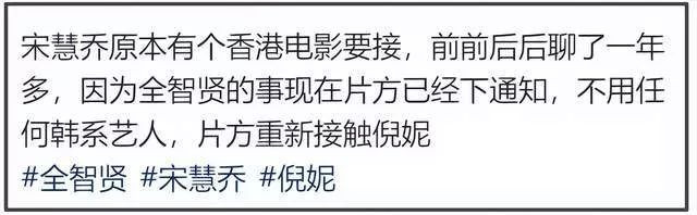 受全智贤辱华影响,一切有关韩星闯中及韩资侵入内娱的消息都十分引发关注。最近,有爆料称宋慧乔也被全智贤辱华风波影响到,眼看就要成功的合作泡汤了。 ![]() 爆料人自称是业内打工人,掌握了一手组训。 她称宋慧乔涉及的香港电影项目谈了一年多时间,片方下通知不用任何韩系艺人,重新接触倪妮。这个爆料时间出来得太巧,离全智贤辱华风波特别近,第一反应容易让人觉得不太真实,毕竟限韩令还在那放着,过去有韩星出演的影视剧全都压着没播出,资本犯不着冒这个险。 ![]() ![]() 但细盘一下逻辑,有网友认为可能并不是空穴来风,能谈一年多说明双方合作意愿强烈,而“限韩”的尺度把握也各有理解,若宋慧乔出演的是冲击国际奖项的影片,不会受限韩令影响。 ![]() ![]() 而且,演电视剧出身的宋慧乔在韩国的电影资源比不得在中国获得的电影资源,无论是电影班底还是片酬都令人眼馋。更何况韩影式微,宋慧乔新片都扑街了。韩星大费周章在内地营销,也是为了保持热度拿资源。 ![]() ![]() ![]() 对于中国市场,宋慧乔一直很看重,在采访中特意强调自身是韩流文化的受益者,曾跟中国很多优秀的电影导演和演员合作。如果有机会与韩国演员合作的话,宋慧乔的机会很大。现实一点,宋慧乔在韩国也接触不到顶级的电影资源,在韩国拿的奖项不如汤唯,说明业界反响及受众市场也十分有限,新片扑街更是一记重锤。 ![]() 在中国,宋慧乔拥有一定的路人盘,只要限韩令的口子稍微松一点,来捞金不是奢望,毕竟稍微有点人气的韩星爱豆都能在内地开签售会。但偏偏全智贤辱华风波闹大了,转机直接变成危机。当然,目前这个爆料无法证实真伪,但观看舆论反应,中国网友表示喜闻乐见,支持限韩令限到底。 ![]() ![]() 其实,这么多年来,韩剧一直在潜移默化贬低中国,以及利用各种途径“偷”中国文化,不限于爱豆MV、舞台造型、影视服化道等等,只是全智贤与《暴风圈》暴露出来的恶意更为直接,引发的连锁反应更强。再加上全智贤、林允儿等都是在中国拥有较好路人缘的明星,她们的恶意都如此明显,更何况其他韩国人,由此也可以看出韩星的路人盘早已崩了,不被待见太正常。 ![]() 除了韩星外,韩国资本持续加大对中国文娱入侵的行为也招惹反感,比如与横店的合作项目,横店影视城官号直接被骂到锁评。韩资收购华谊等城市文化IP游玩项目,都令不少网友表示要警醒,要预防他们偷窃中国文化占为己有。跨国公司投资并不稀有,但韩国的投资集中在文娱产业,让人不得不防。 ![]() ![]() 通过这些事情也可以看出,限韩是很明智的决定。希望业内都能收紧一点,不要给某些人钻空子。 |