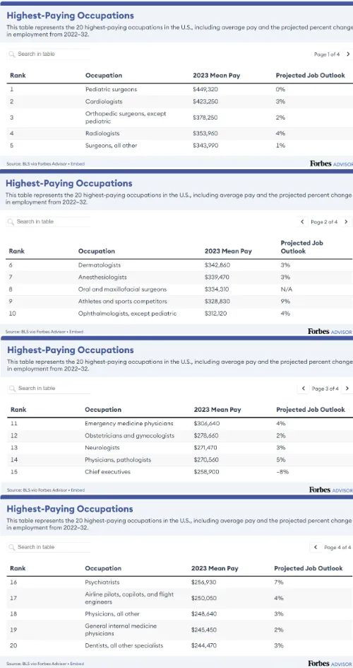 如果你家娃是一名医生,然后把医院的工作辞了,你作为父母会火大、想揍他么? 最近,我认识的一位朋友就如此“大逆不道”,把医院的工作辞了。 她是国内一线城市三甲医院的医生,出国前已是副主任级别,一年半前来美国高校镀金。不出意外,回国后升迁主任级别是指日可待。但正是这趟出国,她反倒下决心换赛道了。 从医学生寒窗苦读算起至今,十几年职业生涯,说抛就抛。 在国内,医生是一份能兼顾稳定性、收入水平、尊重度、职业生命线、社会贡献、惠及家人的好工作。无论从何种标准评价,都很难舍弃。 即使在国外,医生也依然是华人父母内心的黄金职业。尤其如今计算机专业江河日下,它的含金量更是凸显。 可是,无论多么受人推崇,当你从围城内和围城外两个角度看时,这份职业也有两副面孔。即便能把孩子鸡进哈佛医学院,也未必就能许他/她一个理想人生。 要不要鼓励孩子读医,看完这篇文章后再下结论也无妨。 学医,东亚父母的执念 很多华人父母希望孩子报考计算机、STEM这类大学专业,大部分出于“路径依赖”:这批父母自己当年就是靠着这类专业出来留学,扎根,安身立命的。 我认识的不少华裔家庭赶巧碰上持续十几年的互联网红利,赚得盆满钵满,即便在美国也能过着体面的中产生活。 但,医学专业也绝不遑多让, 是华人父母最心仪的大学专业之一。之所以呼声没有那么高,一方面是因为学习周期长、太苦、费用昂贵,另一方面,医学院竞争激烈,孩子未必有能力考上。 但如果可以选,很多华裔父母绝不会放过让孩子学医的机会。 在华人论坛上,经常能看到这样的讨论: 到底给孩子报什么专业?计算机、机器人、还是数据分析或其他……得到首肯的答案总是医学院! ![]() 甚至娃还在上小学,父母们就开始认真考虑培养路径了。 ![]() 去年一项发表在 JAMA Network Open 期刊的研究分析证实,华裔在各个医学职业阶段都有较高从业比例。 ![]() 为什么独独对医生这一职业有执念呢? 首先,医生稳定性高,收入也不错。 医生在美国具有很高的社会地位,医疗行业需求长期旺盛,医生薪资高,失业风险低,这符合华人家庭对“铁饭碗”的追求。 就以收入为例,根据美国最新的《2024年医生薪酬报告》(Physician Salary Report for 2024)显示:2024年,美国所有医疗机构的医生平均收入为36.3万美元。 ![]() 在29个医疗专业中,收入最高的专业分别是:骨科(55.8万美元)、整形外科(53.6万美元)、心脏病学(52.5万美元)、泌尿科(51.5万美元)和胃肠病学(51.2万美元)。 ![]() 如果横向与其他行业对比,根据《福布斯》去年的调研显示:美国收入最高的20个职业里,除了首席执行官(位居15)和飞行员(位居17)之外,其它全是医生(不同专业)。 ![]() 其次,华人父母普遍重视教育,愿意投入大量资源支持子女学业。尤其像医学这种,学习年限长,费用昂贵的专业。 另外,从一代移民家长的角度来考虑,许多移民家庭经历了身份转换、经济压力和文化适应的挑战,因此父母们更倾向于让子女选择高回报、高保障的职业,以确保下一代能够在美国站稳脚跟。 即便不考虑收入,医生在社会地位高,对已经济自足的华裔家庭而言更体面。 不仅是中国父母对医生这份职业充满执念,东亚父母恐怕概莫如是。 去年,韩国医生罢工潮闹得沸沸扬扬,医生们一边控诉自己的工作待遇和环境,一边抗议政府对医学院进行扩招。 即便如此,这场风波丝毫没有阻挡后来者想当医生的热情。 去年韩国的复读生超过16万人,创21年来新高。其中,不少人就是因当届政府扩大医学院招生规模而决定复读。 毕竟,以前的韩国医学院,只有全国最顶尖的0.01%学生考得上。扩招后的概率是0.015%,考生们不愿放弃这一丁点的机会。 虽然“围城内”的人都说,劝人学医、天打雷劈,但“围城外”的父母们依旧初心不改。 ![]() 图源pexels 都说学医苦,到底有多苦? 我曾和一位朋友聊天,她女儿很争气,考上了医学院。她告诉我,和女儿同期的一些医学院女生学会吃避孕药,控制自己的月经,以免糟糕的身体状态影响学业。 可见,学医对身体素质的高要求。没有过硬的身体,即便自己喜欢,也未必能熬下来。 纪录片《医生日记》跟踪拍摄了七名哈佛医学院学生,从第一天上课到成为职业医生的历程。 十三年来他们的人生经历了起伏迭宕。在这部纪录片里,人们看到了从一名医学生到成为独立看诊的医生,十多年间要经历哪些痛苦的修炼。 ![]() 学生时期,他们每天得花6个小时看专业书或者影像资料,这里不包括走去图书馆或者找资料的时间。6小时就是纯纯坐在书桌前,高度集中看书的时长。 有的学生会随身带秒表,每次上厕所、或者间歇休息,就会掐表计算,防止“浪费”过多时间。 就连洗衣服、做饭这些琐碎的日常事务,对医学生来说,都是不可能完成的任务。 此外,他们还得克服常人难以承受的场面。上大体解剖课,连呕带哭是每名医学生的必经之路。 ![]() 还得参加无数次考试。 ![]() 即使通过重重关卡,等到去医院开始实习,真正面对病人的那一刻,还是有可能抓瞎。 ![]() 好不容易熬完四年毕业,去医院当住院医生后,地狱模式才真正开始。 成为一名住院医生意味着什么? 首先,你是一个几乎随叫随到、什么杂活都要干的廉价劳动力。 ![]() 一位刚开始工作的住院医生会有哪些工作量呢? 收治一位发烧、可能有败血病的病人,给病人做腰穿——手从直肠进入,