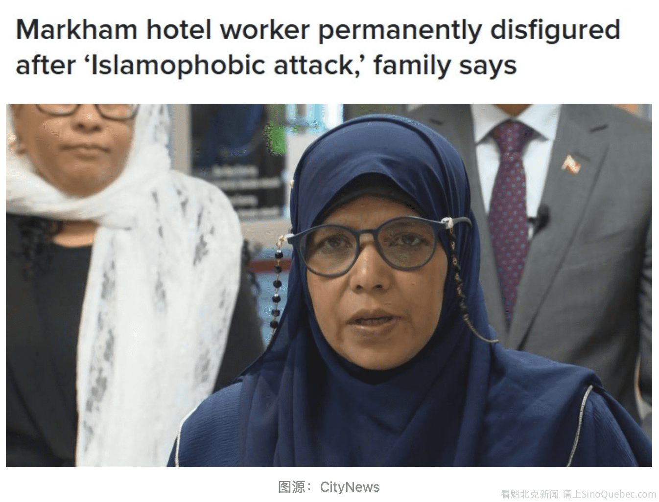 据家属称,一名54岁员工上月末在万锦市一家酒店内遭遇“伊斯兰恐惧症袭击(Islamophobic attack)”,导致永久性毁容。 约克区警方称,事件发生于9月28日凌晨3点左右,地点在Highway 7 East与Commerce Valley Drive West附近。 当时酒店一名员工报告称,一位醉酒的房客变得极具攻击性。 警方调查显示,该房客在结账付款时,信用卡被拒后就变得情绪失控。得知酒店职员是穆斯林后,他的态度突然转变,开始发表侮辱言论并实施暴力。 加拿大穆斯林全国委员会(NCCM)在周四的记者会上表示:“嫌犯要求受害者说出自己的族裔与宗教身份,当得知他是穆斯林后,立即发动了残忍袭击。” “他连续挥拳击打受害者头部,并高喊死亡威胁。” 受害者逃出酒店试图报警,嫌犯又追上去继续殴打。 受害者严重毁容:眼眶移位、颅骨塌陷、牙齿碎裂 急救人员赶到后将受害者送医。嫌犯在附近被捕,警方确认其身份为31岁的多伦多男子 Geethansan Sriranjan,并以“造成身体伤害的袭击罪”与“威胁罪”起诉。 穆斯林全国委员会称,这名酒店员工遭受“灾难性面部伤害”: 眼球从眼眶移位, 头部受到钝击导致颅骨塌陷, 牙齿全部碎裂,下颚需用钢丝固定, 无法进食、无法说话,甚至可能永远失去部分视力。 发言人说:“言语已无法形容我们社区此刻的痛苦与愤怒。” 受害者的妻子在发布会上泪崩,她形容丈夫是一个温和、勤奋、善良的人:“他一向尊重每一个人,如今却承受着无人该承受的痛苦。” “他的脸毁了,牙齿碎了……我每次看着他,心都碎了。” “他不会再是从前的他,我们的家也再没有笑声。” 政界谴责:伊斯兰恐惧暴力在加拿大上升 安省议员Michael Coteau与联邦议员Salma Zahid出席记者会,Zahid 表示:“这是一起可怕的仇恨袭击,明显带有伊斯兰恐惧动机。可悲的是,这种事件在加拿大并非个例,它影响整个社区。” 根据加拿大统计局数据,自疫情以来,针对穆斯林的仇恨犯罪上升逾150%——从2020年的84起增至2024年的229起。 穆斯林全国委员会首席运营官Omar Khamissa表示:“暴力与伊斯兰恐惧症仍在摧毁这个国家的穆斯林群体——我们何时才能真正醒来?” 该组织呼吁:所有政界人士应停止使用针对穆斯林和移民的暗示性言论;支持联邦政府在2022年与2024年发布的两份打击伊斯兰恐惧报告与行动计划。 发言人总结道:“正是这种‘默许的言论氛围’,助长了仇恨与排斥的毒性气候。” 约克区警方表示,案件调查仍在进行中。 警方在声明中表示,强烈谴责任何仇恨行为:“仇恨在我们的社区中没有立足之地。我们致力于保护所有居民,并严肃对待此类事件。所有涉及仇恨犯罪或仇恨偏见动机的事件报告,警方都会进行彻底调查。” 警方呼吁:“如果您目击或成为仇恨犯罪、仇恨、偏见事件的受害者,请立即向警方报案。” 任何掌握线索的人士,可致电约克区警局仇恨犯罪预防科(Hate Crime Prevention Unit):1-866-876-5423 分机 6552,或联系灭罪热线 Crime Stoppers:1-800-222-TIPS,亦可通过网站匿名举报 www.1800222tips.com。 |