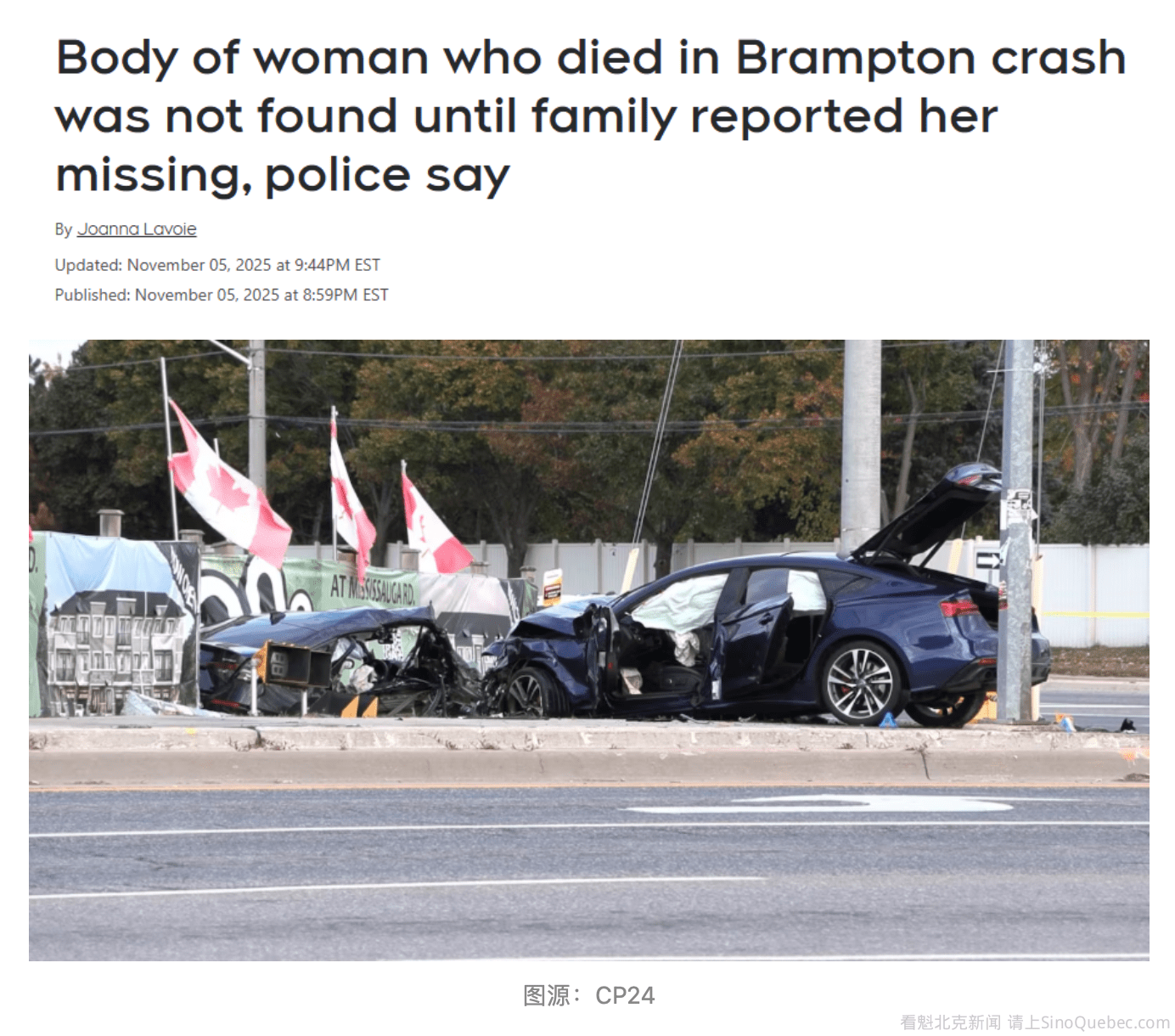 警方表示,上周末布兰普顿发生的一起车祸中,一名女性的遗体直到其家人报失踪数小时后才被发现,而她所乘的车辆在此之前已经被拖到扣押场。 这起涉及两辆车的事故发生在11月1日凌晨4:20左右,地点位于Chinguacousy Road与Queen Street附近。 最初,皮尔地区警方报告称现场发现一人伤势危及生命,后经确认死亡。该名死者是一名31岁布兰普顿男性。 警方新闻官Tyler Bell-Morena在周三晚间给CP24的跟进邮件中说:“第一时间抵达现场时,急救人员在一辆本田思域(Honda Civic)内发现一名死亡司机。布兰普顿消防及紧急服务(BFES)将其救出。” “现场随后进行了处理,两辆涉事车辆也被扣押并运至警方扣押场,以便进一步分析。” Bell-Morena指出,当时本田车内“没有立即或明显的迹象显示有乘客”。 但周二,调查人员宣布第二名死者,一名20岁布兰普顿女性。 Bell-Morena在前述邮件中说:“事故发生数小时后,我们接到报案称,一名20岁女性失踪。通过共享追踪应用确认,她最后的位置正是事故现场。警员同时回到事故现场并前往扣押场,查看是否有乘客的痕迹。” “警员仔细检查了被毁坏的本田思域后座区,发现死者的遗体被困在车祸残骸中。随后,我们请求消防局使用专业设备协助将其救出。” Bell-Morena表示,警方将与合作单位进行“联合复盘”,以“全面审查事故经过”,并补充道:“我们理解这场悲剧带来的深远影响,也希望公众尊重相关家庭的隐私,让他们在悲痛中得到空间。” 他还说:“我们的心与受这起悲惨车祸影响的家庭及所有人同在。” 另一辆车的司机是一名未成年人,根据《青年刑事司法法案》不能公开身份,目前已被控危险驾驶导致死亡和拒不服从警方指令等罪名。 警方表示,调查仍在进行中,任何知情者或有行车记录仪录像的公众,可匿名联系警方或Crime Stoppers提供线索。 |