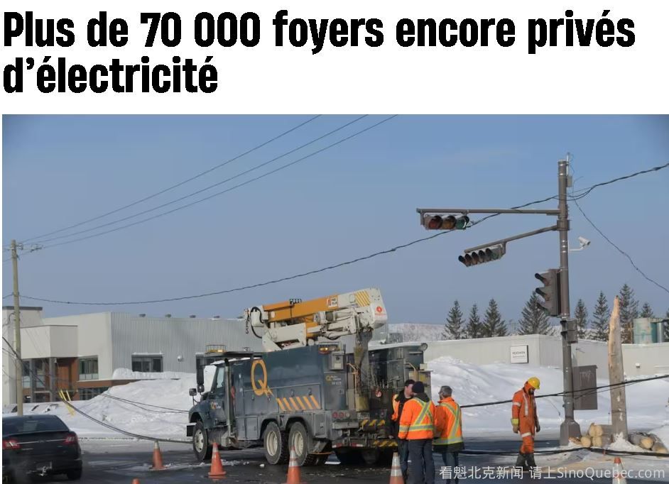 受到大雪影响,今天周三早晨魁北克省仍有数万的家庭尚未恢复电力。 截至早上 7 点左右,Hydro-Québec 的停电报告显示,仍有约 72,810 户家庭没有恢复供电,主要分布在Montérégie、魁北克中部、Lanaudière 和 Saguenay 地区。 前一天上午,受停电影响的客户一度超过 38 万户。魁北克水电公司(Hydro-Québec)承诺将在周三让所有用户重新接入电网。 在Montérégie地区,约有 28,372 户家庭今天早上仍然没有电;在 Saguenay 地区,这一数字为 14,732 户。 接下来是 Lanaudière 地区,仍有 14,886 户等待重新接入电力网络。而在蒙特利尔,则有 4,746 个地址仍受到停电影响。 在魁北克中部地区,由于大雪量大,自周二以来约有 9,204 户家庭依然没有恢复供电。 Hydro-Québec 的技术人员在今天早晨仍在全力抢修,以尽快恢复全省的电力供应。 |