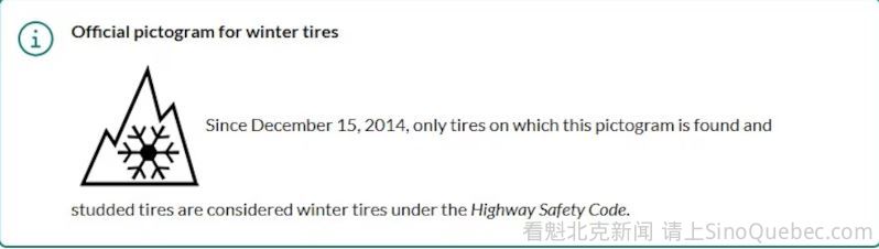 在魁北克省,现在驾驶安装夏季轮胎的车辆将面临被罚款的风险。 魁北克规定,每年 12 月 1 日至次年 3 月 15 日,冬季轮胎为强制要求。 唯一的例外是重型车辆、工具车辆和农用机械。 魁北克指出:“这一要求同样适用于租赁乘用车、轻便摩托车、电动摩托和摩托车。” 未更换冬季轮胎的罚款金额在 200 至 300 元 之间。对于最近从经销商处购车的人,有 7 天宽限期。 魁北克交通部(MTQ)表示,冬季轮胎胎纹更深,有助于增加牵引力、缩短刹车距离并保证加速安全。MTQ 还提醒司机,在气温下降时应减速,并保持更大车距。 警察会在截止日期一到就进行 随机检查,检查车辆是否配有雪花标识轮胎或防滑钉轮胎,这是《公路安全法典》允许的唯一冬季轮胎类型。 雪花标识如下图所示(照片来源:SAAQ) 路边停车变化 从 12 月 1 日起,街道清扫期间的车辆迁移要求将暂停至 4 月 1 日,街边停车规定将放宽。 街边停车的司机仍被建议下载 Info-Neige 应用,并在下雪时注意路牌,以免影响清雪作业,被拖车并罚款。