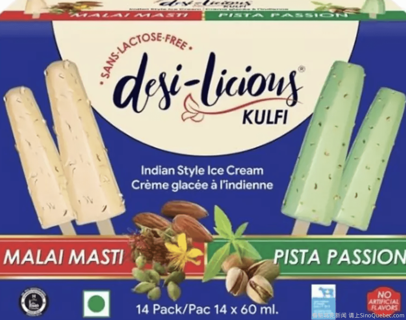 加拿大Costco於12月4日發出產品召回通知,召回在去年10月17日至今年12月2日期間,於Costco各門市分店銷售的Desi-Licious Kulfi雪糕棒。 出產這些甜品的Gelda Foods公司,現正召回多個批次的雪糕棒,因為它們可能受到沙門氏菌污染。 這次召回的是一盒14支裝的印度風味無乳糖雪糕棒,共有兩種口味:奶油乳酪味(malai masti)和開心果味(pista passion),傳統製作原料是牛奶、開心果和荳蔻。 Costco敦促顧客不要食用、分發、使用、出售或分銷受影響的產品。 Gelda Foods發聲明中表示:「消費者可以將Desi-Licious Kulfi 雪糕棒退回Costco門店,獲得全額退款。」 受沙門氏菌污染的食品可能外觀和氣味正常,但仍可能導致生病。一般人可能出現發燒、頭痛、嘔吐、噁心、腹部絞痛或腹瀉等短期症狀,但幼兒、孕婦、老人和免疫系統較弱的人可能會有更大危險。沙門氏菌也可能導致長期併發症,包括嚴重的關節炎。 如果曾於上述日期購買了相關產品,請務必查看包裝上印在最佳食用日期上方的批次編號。受召回影響的批次代碼包括:4283、4284、4297、4303、4304、4305、4306、4310、5126、5127、5130、5132、5134、5136、5140、5143、5132、5134、5136、5140、5143、5148、5149、5157、5168及5169。