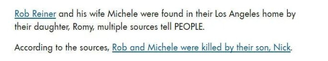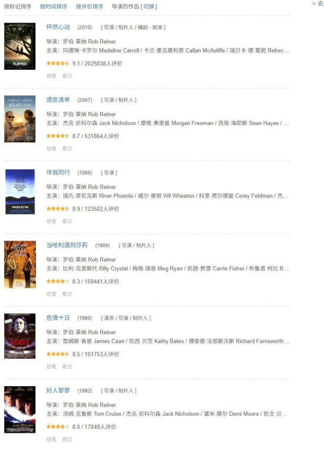 话说在好莱坞,导演大概可以分成两种: 第一种,所谓的“明星导演”。其他导演可能需要明星主演来保证电影的上座率,明星导演不一样,他自己就是电影的金字招牌,像卡梅隆、诺兰、斯皮尔伯格...... 第二种呢,实力很强,但相对来说没那么出名。 你提他的作品,大家都点头,但是说导演名,很多人就要愣一下了。 罗伯·莱纳(Rob Reiner)就是其中一位典型。 ![]() 《怦然心动》《伴我同行》《当哈利遇到莎莉》《危情十日》《遗愿清单》...... 这些我们耳熟能详的电影,其实都是他拍的。 很可惜,2025年12月14日,罗伯·莱纳与妻子米歇尔·辛格(Michele Singer)双双死于家中,享年78岁。 他们并非自然死亡,而是被刀刺死。 根据《人物》杂志的独家消息,杀死二人的竟然是他们的儿子,尼克·莱纳(Nick Reiner)。 ![]() (莱纳父子) 先来看下官方消息。 根据洛杉矶警局的说法,周日下午3点40分左右,警方接到报案称莱纳夫妇家发生死亡事件,随即赶到现场,发现两具尸体。周日晚,警方表示调查人员正在申请搜查令,但嫌疑人身份暂未曝光。 官方的口径是:他们正将此案作为凶杀进行调查。 而根据《人物》杂志的小道消息,杀死莱纳夫妇的正是他们的儿子尼克,发现尸体的人是他们的女儿,罗米(Romy)。 《人物》称从多个渠道听到了同样的说法,可信度方面应该比较高。 ![]() (《人物》原文) 莱纳夫妇住在洛杉矶的布伦特伍德,是一个比较有名的富裕社区,众多名人都在这里生活过,比如“小辣椒”格温妮丝·帕特洛、勒布朗·詹姆斯、“州长”阿诺·施瓦辛格...... 值得一提的,有两起著名的死亡事件也发生在布伦特伍德。 一是1962年,玛丽莲·梦露的死。 梦露生前就住在布伦特伍德一座庄园,现在那房子还在原地没拆。 ![]() (梦露的庄园) 二是1994年,O.J.辛普森杀妻案。辛普森当时就住在布伦特伍德,杀妻案也是在布伦特伍德发生的。 此案可以说是爱泼斯坦案之前美国最著名的凶杀案,卡戴珊家族之所以声名鹊起,最开始就是因为罗伯特·卡戴珊充当了辛普森的朋友兼律师,成了全美最著名的大律师之一。 ![]() (O.J.辛普森) 而现在,布伦特伍德的著名凶杀案又多了一起。 接下来聊聊此案的嫌疑人尼克·莱纳。 根据2016年《人物》杂志的一篇采访,尼克很早就继承了父亲的衣钵,22岁时他和人合写了一部电影,内容居然是取材自他本人的戒毒经历。 他说自己15岁就第一次进了戒毒所,后来更是连进了17次戒毒所,到19岁,他才终于开始制作电影、写剧本。 也就是说,这人4年进了18次戒毒所,合一年4.5次...... ![]() (尼克当时的专访) 此外,他说自己在这段时间曾屡次无家可归:“我在缅因州流浪过,在新泽西流浪过,在德克萨斯州流浪过......我曾在街头露宿,流浪过好几个星期,那段日子可不好过。” 后来,这段经历被他改编成剧本,由他父亲罗伯·莱纳亲自执导,让这个故事上了大银幕。 最终,这部电影取名《查理的故事》,在IMDB仅斩获6.2分。 (此片在国内平台评分人数仅几百人,这里就取IMDB的分数了。) ![]() (《查理的故事》) 我们不妨看看莱纳执导的其他作品的质量。 如图所示,最出名的那几部就没有低于8分的,而且几十、上百万的评价人数,可见含金量。 ![]() (莱纳的作品们) 外人不清楚莱纳家庭的相处模式究竟如何,可单看莱纳本人的做法:接纳一个深陷毒瘾的儿子,为他铺路,给他资源,甚至为他赌上导演的声誉,亲自拍他的剧本。 作为父亲,这应该算仁至义尽了吧? 很难想象尼克竟然是这样“回报”父亲的。 天知道他是不是又毒瘾犯了,希望警方后续能给个明确的说法。 莱纳家算是演艺世家,罗伯·莱纳的父亲卡尔·莱纳就是好莱坞著名的编剧、导演兼喜剧演员,拿过11项黄金时段艾美奖、1项格莱美奖和马克·吐温美国幽默奖,含金量高得离谱。 ![]() (卡尔·莱纳) 罗伯·莱纳子承父业,也很快展露出了在演艺方面的天赋, 70年代,他就在CBS情景喜剧《一家子》中崭露头角,并于1974年拿到了自己的第一座艾美奖,那年他才27岁;紧接着又4年后,他又因这部剧拿下了第二座艾美。 ![]() (早期作为演员的罗伯·莱纳) 光是演戏还不够,接下来罗伯又大力发展自己的编剧、导演功力。 上世纪八九十年代,他来到了自己的创作黄金期,各种题材信手拈来,而且拍一部红一部。 1986年,拍了广受好评的成长题材剧情片《伴我同行》... ![]() (伴我同行) 1987年,换到奇幻赛道,拍出《公主新娘》... ![]() (公主新娘) 1989年,最著名的浪漫喜剧之一,《当哈利遇到莎莉》... ![]() (当哈利遇到莎莉) 1990年,突然又拍了惊悚片《危情十日》... ![]() (危情十日) 1992年,少见的军队+法律题材电影,《好人寥寥》... ![]() (好人寥寥) 顺便一提,杰克·尼科尔森演员生涯最著名的两个梗,其一当然是《闪灵》劈门的名场面;第二就出自《好人寥寥》,是他和阿汤哥对戏时的一句台词,“You can't handle the truth”。 ![]() (You can't handle the truth!) 另外,阿汤哥在《好人寥寥》之前虽然已经取得了不错的票房成绩,但屡屡被影评人诟病“花瓶”、“演技不够”,而《好人寥寥》之后,此类声音逐渐消失不见——能跟尼科尔森大爷对戏不落下风,这个年轻演员真有点东西。 ![]() (阿汤哥和尼科尔森对戏) 值得一提的是,除了两位影帝的精彩表演之外,其实罗伯·莱纳作为导演的功绩一定程度上被掩盖了——能请到好演员是一回事,能让好演员发挥出来又是另一回事。 在这之后,大