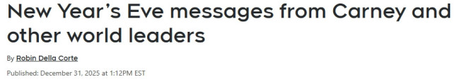 在2026年即将到来之际,加拿大总理、总督及多国领导人陆续发表新年前夜致辞。 ![]() ![]() 图源:youtube 加拿大总理马克·卡尼(Mark Carney) 加拿大总理卡尼在新年前夜致辞中提到了国家在今年面临的“挑战”,并强调了团结的重要性。 他写道:“今年给我们的国家带来了不少挑战,但同时也再次提醒我们,我们是一个非凡、慷慨、彼此关怀的国家的一分子,这是多么幸运。” “当我们团结一致、彼此守望、相互照顾时,我们最为强大。这正是加拿大强大的原因所在。” 加拿大总督玛丽·西蒙(Mary Simon)总督玛丽·西蒙在致辞中提到了受山火影响的社区、经济发展、原住民文化与语言的复兴,以及多伦多蓝鸟队冲击世界大赛的历程。 她表示:“在2025年,我看到的加拿大是一个勇敢、包容、致力于建设和平的国家。” “贯穿始终的是强烈的国家自豪感——就像全国上下团结一致支持多伦多蓝鸟队那样。新的一年将带来更多美好的机会,去进一步巩固将我们凝聚在一起的纽带。” 新民主党领袖唐·戴维斯(Don Davies)加拿大新民主党(NDP)领袖唐·戴维斯在新年前夜致辞中谈及了当前的国家挑战,包括生活成本上涨、住房可负担性以及粮食安全问题。 他也展望了2026年,称新的一年对新民主党而言将是令人振奋的一年。 戴维斯写道:“我们将继续推动党的重建,推广进步政策,并在今年春天选出新的党魁。在社会、经济和环境挑战日益加剧的背景下,新民主党的声音在国会中从未像现在这样重要。” 中国国家主席习近平中国国家主席习近平通过中国媒体集团,以广播和电视的形式发表新年前夜讲话。 ![]() 习近平回顾了2025年中国在经济、社会发展以及科技领域取得的重要进展。 他说:“人工智能大模型你追我赶,芯片自主研发有了新突破,我国成为创新力上升最快的经济体之一。“ 习近平的讲话还强调了中国在国际舞台上日益增强的影响力。 今年,卡尼曾与习近平会面,就双边贸易等议题进行讨论。会后,卡尼表示,加中关系正处在一个“转折点”。 他说:“这是一个能够为加拿大家庭、企业和劳动者创造机遇的转折点,同时也为解决当前问题开辟了道路。” 俄罗斯总统普京(Vladimir Putin)俄罗斯总统普京的新年前夜讲话提及了俄乌战争。 这段讲话首先在俄罗斯最早进入2026年的地区堪察加半岛播出。 法新社(AFP)报道称,普京在讲话中向在乌克兰作战的“战士和指挥官”致辞,称他们为“英雄”,并表示:“我们相信你们,也相信我们的胜利。” 这场战争已经持续近四年,于2022年2月开始,当时普京对乌克兰发动军事行动。 联合国在11月报告称,自入侵以来,乌克兰已有53,006名平民伤亡,其中14,534人死亡。 有关结束战争的讨论仍在持续。12月28日,乌克兰总统泽连斯基与美国总统特朗普会面,特朗普表示,达成解决方案“比以往任何时候都更接近”。 乌克兰总统泽连斯基(Volodymyr Zelenskyy)乌克兰总统泽连斯基通过社交媒体平台X向乌克兰民众送上新年祝福。 他写道,尽管与俄罗斯的战争仍在持续,乌克兰依然致力于实现和平。 “今年之所以能够坚持下来,要归功于我们的守护者——他们不仅为乌克兰而战,也为所有珍视自由与尊严的人而战。” “我们带着支撑我们前行的一切继续向前:经验与记忆、家的呼唤、希望与信念。我们还带着集体行动的能力与人性——这些在任何逆境中都不会消失。” |