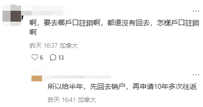 ![]() 小红书截图 与此同时,类似的说法也在社交平台上出现,进一步加剧了不确定性: “我孩子去年11月申请的,确实只给了半年2次的签证,让回国后办完户口注销后下次再给10年多次往返签证” ![]() “我跟po主情况一样,本来一切顺利,材料都提交了,结果取护照的时候被要求销户。(没隐情哈,完全没有老老实实来这边念书然后留下的)我在想是不是跟省份有关系。我是HB的,跟我情况一样的大家能留个言说一下省份吗?” ![]() “xhs上刷到有人1月多伦多办的签证是有这个要求。今天我们华人邻居群也在说这个” ![]() “给半年,先回去销户,再申请10年多次往返。” ![]() 但也有大量网友给出了不同反馈,例如: “刚办完Q2,多伦多,没有要求销户证明。” ![]() “元旦刚办完第一次Q2,多伦多签证中心,没有这些乱七八糟的事。” ![]() “我今天刚去办好了,没什么要求。” ![]() “刚办的,有旧的签证,没有这要求。可能针对第一次办的吧。” ![]() 可见,实际办理经历并不一致。 中国签证申请服务中心回应 在相关讨论持续发酵后,51网记者直接中国签证申请服务中心(多伦多)进行咨询,并获得了书面回复。 官方回复的核心内容如下: “关于中国签证申请政策,详见签证中心门户网站(https://www.visaforchina.cn),以网站上公布的签证类型及材料清单为准。遇特殊案例,以中国驻多伦多总领馆要求为准。” 这意味着,网传说法并非来自官方统一政策。 ![]() 图源:51记者拍摄 哪些情况“可能”涉及身份类补充材料? 根据中国签证申请服务中心官网公布的《签证类型及材料清单》,可以看到以下与本次讨论直接相关的内容。 1. 一般签证申请所需材料 官网列出的常规材料包括: