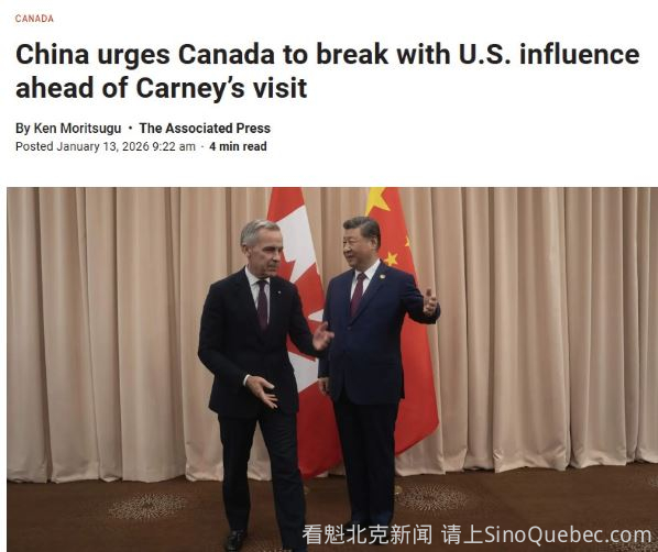 据美联社报道,加拿大总理卡尼于周三抵达中国之际,中方东道主认为这是一个机会,至少在一定程度上把这位美国长期盟友从其竞争对手身边“拉开”。 中国官方媒体呼吁加拿大政府走出一条独立于美国的外交政策路线,即所谓的“战略自主”。 图源:national newswatch 加拿大在地理和政治等方面长期以来都是美国最亲密的盟友之一。但北京希望,美国总统特朗普对其他国家采取的经济强硬政策,以及如今的军事行动,会削弱这种长期关系。 此前,中国政府曾对美国前总统拜登试图加强与欧洲、澳大利亚、印度、加拿大等国家的关系、以共同应对中国的做法表示不满。如今,北京看到了尝试松动这些关系的机会,不过对这一进程能走多远仍保持谨慎。 卡尼本人则把重点放在贸易上,称此次访华是加拿大在全球范围内建立新伙伴关系、以结束对美国市场经济依赖的一部分。特朗普此前已对加拿大出口到美国的商品加征关税,并暗示这个幅员辽阔、资源丰富的国家可能成为美国的“第51个州”。 外交关系的“复苏尝试” 去年上任的加拿大总理卡尼正试图修复在其前任杜鲁多执政期间、长达六年多充满紧张与摩擦的加中关系。 两国关系的下滑始于2018年末加拿大应美国要求拘捕一名中国科技公司高管。随后,特鲁多政府在2024年追随拜登政府,对中国制造的电动车加征100%关税,进一步加剧紧张局势。作为回应,中国对加拿大出口的油菜籽、海产品和猪肉等商品,以及加拿大对钢铁和铝征收25%关税的举措,采取了反制性关税。 中国官方英文报纸《中国日报》(China Daily)本周在一篇社论中写道:“如果加方反思过去几年双边关系受挫的根源,即前杜鲁多政府与美国步调一致、遏制中国的政策,就会意识到,只要在处理涉华问题时坚持战略自主,就能避免重蹈覆辙。” 该报还警告称:“如果渥太华未来仍选择再次让其对华政策受制于华盛顿的意志,那么此前为修复与北京关系所做的努力,只会付诸东流。” 中国官方媒体《环球时报》则表示:“或许正是盲目追随美国、对中国加征高额关税所付出的沉重代价,唤醒了渥太华的战略自主意识。” 加拿大官员表示,他们预计卡尼此行将在贸易问题上取得进展,但不太可能立即彻底取消任何关税。 能否找到“共同点”? 中国学者认为,加中双方或许能在美国对石油资源丰富的委内瑞拉进行军事干预(并强行将其总统带到纽约受审),以及特朗普随后发表的格陵兰应归美国控制的言论上,找到某种共同立场。 中国人民大学外交与拉美问题专家崔守军表示:“我们也能看到加拿大目前对美国抱有相当程度的不安。如果美国可以宣称对格陵兰拥有主权,那么下一步会不会对加拿大提出类似要求?” 他还预测,特朗普针对委内瑞拉总统马杜罗的行动,将强化拉美国家的战略自主意识,以抵御美国可能的干涉。 不过,中国方面也清醒地认识到,像加拿大这样的国家在多大程度上会向中国靠拢是有限的。一方面,这些国家担心中国不断扩大的经济和军事实力;另一方面,它们与美国之间有着深厚的历史、文化联系。此外,在中国出口激增及其对本国就业构成威胁、人权问题以及台湾问题上,双方仍存在重大分歧。 南京大学国际关系学院院长朱锋警告,不应高估卡尼此次访华的重要性,“因为加拿大不仅是美国的邻国,也是其盟友。” 特朗普对美国传统盟友施加的压力,或许会为中国拓展与这些国家的关系打开一定空间,但美国的盟友仍必须在此与其对美国经济与军事力量的持续依赖之间取得平衡。短期内,这种依赖或许能有所降低,但在可预见的未来,几乎不可能彻底摆脱。