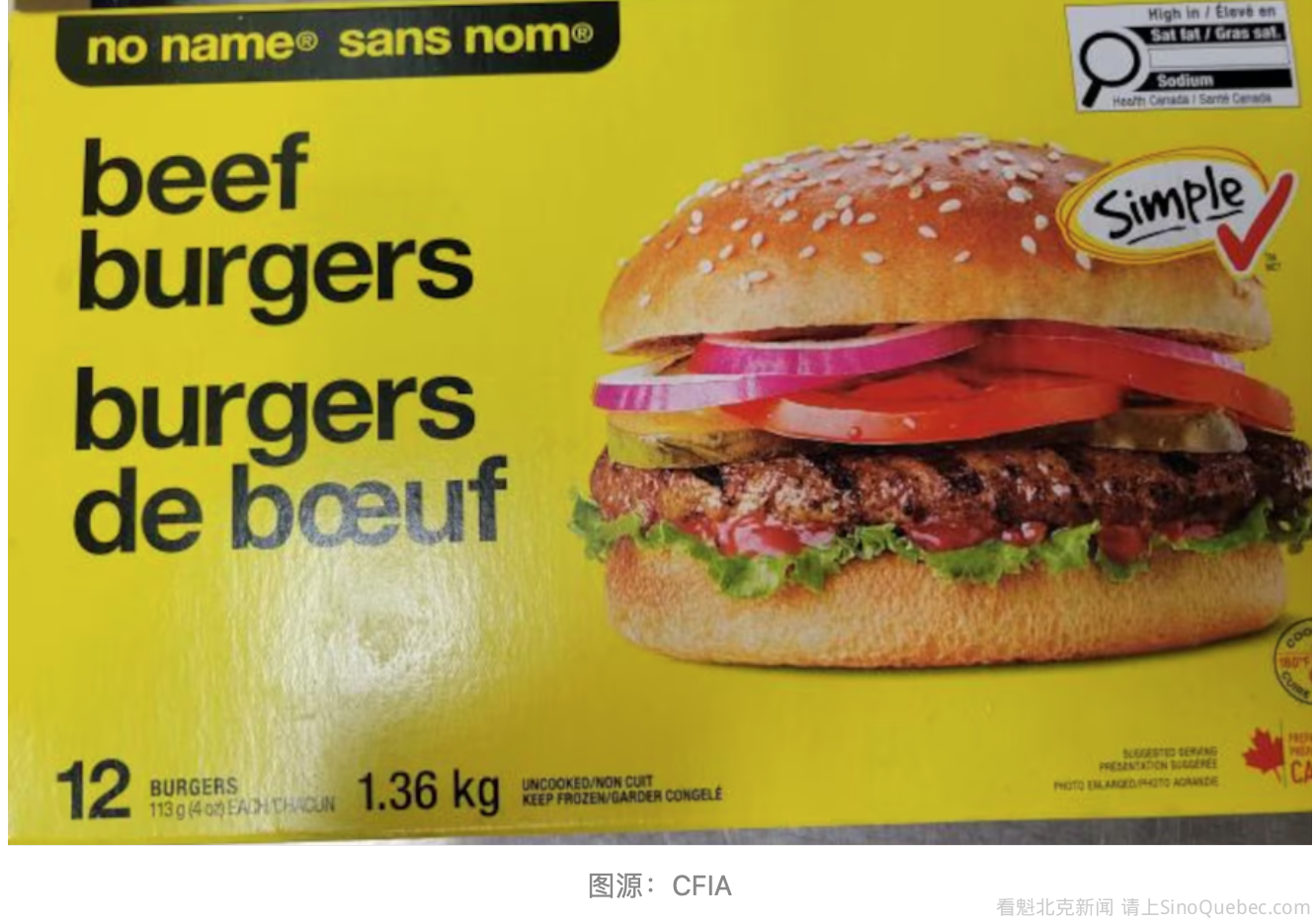 加拿大食品检验局(CFIA)发布全国性召回通知,因可能存在大肠杆菌(E. coli)污染,召回no name品牌的牛肉汉堡。 CFIA在周一发布的新闻稿中提醒消费者和商家,不要食用、使用、出售、供应或分发被召回的产品。 被召回的产品信息如下: 产品名称:no name品牌牛肉汉堡 规格:1.36公斤包装 UPC:0 60383 37333 7 代码:BEST BEFORE 2026 MA 05 B13 BMP EST 112 公告称,此次召回是基于CFIA的检测结果。目前食品安全调查仍在进行中,不排除后续会扩大到其他相关产品。 CFIA表示,目前尚未接到与此次召回相关的患病报告。 如果消费者怀疑自身健康问题可能与该产品有关,联邦机构建议立即联系家庭医生或医疗人员。 CFIA同时提醒消费者检查家中是否持有该批次产品,如有,请立即丢弃或退回购买商店。 食品检验机构还警告称,受大肠杆菌污染的食品外观或气味可能看起来完全正常,但一旦食用,可能导致严重疾病。 公告指出,常见症状包括:恶心、呕吐、轻度至重度腹部绞痛,以及水样或带血腹泻。 在严重情况下,CFIA表示,患者可能出现抽搐、中风,甚至需要输血或肾透析,可能留下永久性肾损伤,极端情况下甚至会危及生命。 CFIA表示,正在确认所有被召回产品已从市场上撤下。 如需了解更多有关此次召回的信息,消费者可通过电邮information@inspection.gc.ca联系CFIA。 |