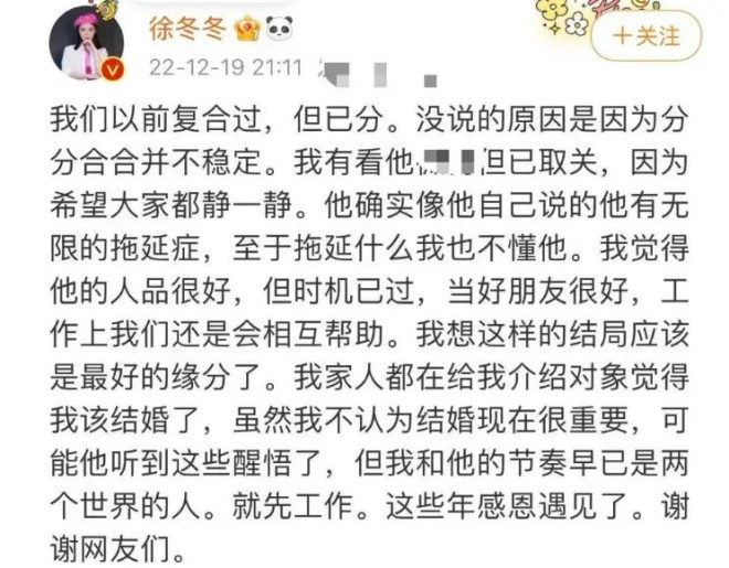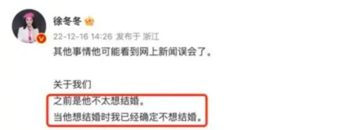 近日,正在备婚的徐冬冬与尹子维去香港时接受了采访,两人在谈到婚礼时也大方分享细节,表示会举办两场婚礼,先在徐冬冬的老家哈尔滨办一场,之后再在杭州举办一场宴请朋友。 ![]() 另外在采访时被问到怀孕一事,徐冬冬立刻非常敏感抢先回答,表示这是个秘密。 ![]() 但从港媒前几天拍到的照片看,徐冬冬目前疑似已经怀孕。两人一起逛街时,徐冬冬穿着紧身衣但小腹隆起明显,尹子维还摸了摸徐冬冬的肚子,看起来孕味十足。不过对于怀孕一事,两人至今没有回应。 ![]() 关于婚礼在官宣结婚喜讯时,徐冬冬就公布将在今年的2月26日举办。哈尔滨场主打冰雪主题,伴手礼是红肠与马迭尔冰棍,上海场招待朋友和同事。 ![]() ![]() 两人的婚纱照也随之曝光,虽然有着15岁的年龄差,但尹子维保养的很好,男帅女美看起来非常般配。 ![]() 在采访时徐冬冬也谈到了两人的相识相恋经过,相识至今已经有9年,但相恋过程也是磨合了很久,分分合合多次才走到了现在的阶段。 ![]() 其实这一对说起来在娱乐圈也称得上是破次元壁恋爱了,完全不同的成长环境,15岁的年龄差,以及名气的差别,但缘分让两人走到了一起。而且这一路走来也并不容易,两人恋爱、分手、复合全部在网上更新,剧情融合了霸总、虐恋、追妻火葬场等戏码,精彩程度就像一部现实版的晋江文。 徐冬冬相比尹子维,名气没有那么高,但这两年在娱乐圈发展的很好。她1990年出生在哈尔滨,主演的作品都是一些配角,2016年凭借《余罪》中“大嫂”沈嘉文一角而被观众熟知。 ![]() 不过大家对徐冬冬更多的印象,则是停留在那个广告上,丰满的身材是她最大的标签。 ![]() 尹子维比徐冬冬大15岁,1975年出生在香港,还是中德混血。尹子维的家境也非常优渥,出道后一直以“美男子”著称,还与吴彦祖合作过《美少年之恋》,成为港片的“不老男神”。 ![]() 一个是东北人,一个是香港混血,一个90后,一个70后,看似完全不同的两人在2017年相遇了,一起合作电影《合约男女》相识。2019年1月,两人一起牵手出现在机场大方认爱,虽然各方面差距较大,但是外形看起来非常般配。 ![]() 紧接着在同年4月份,尹子维就向徐冬冬求婚,而且他求婚的方式也很别致,将求婚钻戒藏在了火锅里。 ![]() 原本以为两人接下来的流程就是结婚,但没想到在同年八月便宣布分手。不过分手文案两人写得都很友好,表示之后还可以继续当朋友。 ![]() 但关于分手原因,网上却流传出各种各样的说法,有港媒称是因为尹子维夜会辣妹被徐冬冬发现,还爆出了两人因此在街头吵架的照片。 ![]() 不过徐冬冬对此否认,表示两人之间最大的问题是男方不太想结婚,但是当他想结婚时,自己已经确定不想结婚了,于是意见不统一最终导致分手。 ![]() 但分手后的尹子维并没有放下这段感情,在2022年开始了追妻火葬场模式。并且在接受采访时表示,自己手机里存的都是徐冬冬的照片,每次过节时都会给她发祝福,但是徐冬冬并没有回复他。 于是尹子维便开始在网上公开示爱徐冬冬,言语之间都是对徐冬冬的不舍,还称自己非常想念她。 ![]() 但是徐冬冬并不回应,甚至还把他拉黑,并且徐冬冬还发文称,在分手的那几年两人复合过,但最终因为双方节奏不一样,最终还是选择分手。另外徐冬冬还称已经将他取关,家人也已经在给她介绍对象。 ![]() 没想到的是,尹子维立刻转发徐冬冬的这条微博,并且喊话称:“你取关你的!我关注我的。”还表示自己会用下半辈子的时间拿出他的诚意,看得出来非常有决心追回徐冬冬。 ![]() 但没多久,尹子维便在网上同步了追妻进度,表示徐冬冬已经将他拉黑。虽然在文字里尹子维还是很正能量,但有次在直播的时候,他突然翻出与徐冬冬的合照哽咽起来,说“拉黑”虽然能挡住他的小心,但是挡不住他的心。 ![]() 而且尹子维越挫越勇,又跑到徐冬冬的抖音下边去留言,每一条抖音下都在花式表白。 ![]() 点击添加图片描述(最多60个字) 另外尹子维也不是只用文字来示爱,在私下也付诸行动,甚至还给徐冬冬送上了房子和车子,但都被对方退回。 ![]() 除了日常的刷屏示爱外,尹子维还会去维护徐冬冬。当有营销号吐槽徐冬冬时,尹子维立刻站出来维护她。有一次徐冬冬与迪丽热巴撞衫,尹子维立刻站出来维护称:“世界所有女生都是美丽的!徐冬怎么样都美丽!”同时还喊话这个营销号:“作者别这样写,带动这个对比气氛不好!瘦胖都是很棒的女生们!” ![]() 就这样追妻大半年后,终于在2023年8月份,两人官宣了复合消息。徐冬冬晒出两人的牵手照,并配文称:“我们尝试再次走在一起,用心对待彼此。谢谢大家。”紧接着尹子维也转发微博并配上了爱心。 ![]() 之后尹子维就更新了社交账号的个人介绍,写了三遍“爱徐总”,以此来力表忠心。 ![]() 复合之后的俩人也比之前更加甜蜜,而且有了融入对方生活的想法。尹子维为了徐冬冬学习简体字,徐冬冬则开始学习粤语和英语,两人上课的过程给大家提供了不少笑料。 ![]() 而尹子维也非常关心徐冬冬的身体,除了工作之外还学习做饭,菜系都是徐冬冬爱吃的,还经常会给徐冬冬送饭。 ![]() 相识九年分分合合,兜兜转转后如今又重新走到一起。两人这种失而复得的感情,不是破镜重圆,是经过时间的淘洗,那份爱终于露出了最坚实的内核。 |
