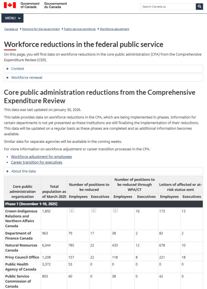 自由党政府近期持续缩减公共服务部门规模,目前已导致超过1.6万个职位被取消,另有2.3万人被告知其工作面临风险。 ![]() ![]() 图源:youtube/national post 政府于周五(1月30日)上线了一个网站,详细列出了核心公共服务各部门预定裁减的职位数量。这些数据不包括国有企业或其他独立机构,由于总理马克·卡尼(Mark Carney)去年指示要求削减15%的预算,这些机构也在进行裁员。 ![]() ![]() 裁员现状与结构 网站显示,在已上报计划的核心部门中,共有 1.6万个职位被确定取消,仍有部分部门尚未提交计划。 在这1.6万个岗位中,约有一半来自不再续约的短期合同工或临时工,以及尚未填补的空缺职位。 另外8,500个被取消的职位涉及拥有永久编制的政府雇员,这些人有权进入正式的人员调整程序。该程序允许公职人员在离职时领取遣散费、获得教育补助或调往政府内部的其他岗位。按照规定,即便员工最终能保住工作,只要其岗位可能受到影响,政府就必须向其发出通知。 政府在去年的预算案中宣布了一项提前退休计划,但允许该计划实施的相关法案尚未获得通过。 尽管政府仅计划在永久雇员中裁减8,500个职位,但作为程序的一部分,已有超过2.3万人收到了裁员风险通知。例如,在加拿大全球事务部,政府已向3,700名员工发出通知,但实际计划裁撤的永久岗位约500个。 财政部委员会主席Shafqat Ali的发言人Mohammad Kamal表示,网站将定期更新,旨在为这一充满压力的过程提供透明度。 Kamal在邮件中表示:“我们感谢公职人员在为加拿大人提供服务中所发挥的宝贵作用。加拿大新政府正以公平和同情的态度处理这一过程。” 目前数据显示,加拿大公共安全部的裁员比例最高:1,789个职位中将取消346个,占比超过20%。紧随其后的是枢密院办公室和加拿大工业部,裁员比例均在14%左右。 加拿大公共服务联盟(PSAC)主席Sharon DeSousa本周呼吁政府进一步公开裁员带来的影响。 她表示:“政府必须向公众清楚说明,这些鲁莽的削减将影响到多少项目和服务。” DeSousa特别提到,加拿大食品检验局的检查员、政府应急行动中心的工作人员,以及加拿大卫生部负责审查药品和治疗方案的科学家都在裁员之列。 她强调,这些工作都是必不可少的,政府应说明裁员后工作将如何开展。 “工作不会凭空消失,总得有人来做,”她说,“他们的计划是什么?是外包还是私有化?如果这些工作无人承担,最终将危及公众安全。” |