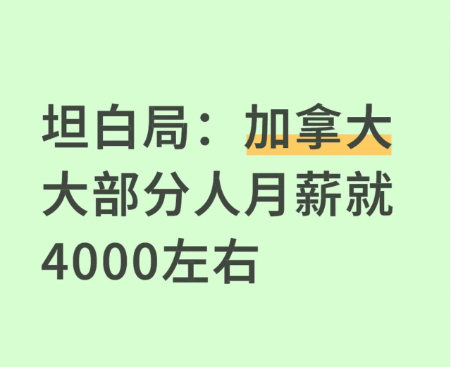 尽管有很多加拿大华人拿着高工资,但普通华人工资大多数都不算高,扣税之后能拿到手的更是杯水车薪,应付生活开销显得力不从心。一位网友发帖探讨真相,发现加拿大普通华人工资税后大约也就4000加元/月。 ![]() 图源:51记者拍摄 小红书网友@加拿大Daisy发帖说:加拿大现在就这样,4000可能都高了。 我发现一件不得不承认的事——加拿大普通工资,其实税后大约4000加元/月。 税后拿到手48,000/年→4000/月 ![]() 图源:小红书 当然,有些人年薪10万,税后6000/月,已经算不错了。 哈哈,不开玩笑,税后到手4000低吗?说明你没在加拿大待过,或者你属于那种有钱、不用上班、对钱没概念的人。 ![]() 图源:小红书 给那些想来加拿大打工的小伙伴们一个提醒:你一听“时薪20加元”,心里冒出人民币100/小时,“天呐,发财了,一天8小时就是800,变钻石王老五了!” 完全不是哈,这边挣钱花的是加币,千万别想着换成人民币脑补发财梦。 哈哈哈,其实说白了,是我自己焦虑了一晚上,半夜做调查自我安慰完,现在顺便安慰你们一下,大家都是多少,可以说出来让我羡慕羡慕么? 一位网友评论说:有没有可能只是你的圈子太窄了? ![]() 图源:51记者拍摄 一位网友评论说:我就不说码农了,就是搞金融的3-5年经验大把的8万以上年薪的,水管工装修的都是年入8-10万起的。卖保险的,上次我也问过年入7万左右底薪再加提成还不算额外的一些收入…… 一位网友评论说:亲爱的,你是真没见过高收入的阶层。洗洗睡睡吧亲,很多人挣钱不是你所想的套路。 ![]() 图源:51记者拍摄 一位网友评论说:在加拿大30年的经历告诉我,加拿大绝大部分人的日子,就只是过得去。但是最大的好处是没有后顾之忧:不会因为钱而怕生病,不会惧怕老无所养。中国现在的医保和养老制度比以前强了太多,但大众还是有所顾虑。 |