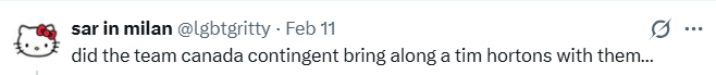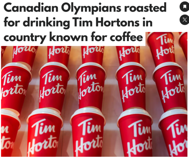 当提到加拿大加拿大文化的标志性元素时,很多人脑海里都会浮现出几个关键词:冰球、礼貌,还有Tim Hortons咖啡。 尽管一直有批评声音指出,自从Tim Hortons于2014年被美国公司收购后,它的“加拿大血统”早已被稀释,但有一点很难否认——这杯咖啡,早就写进了加拿大人的DNA里。 几十年来,这家由冰球名人堂成员参与创立、并以其命名的咖啡连锁,已经从街角小店变成加拿大最成功的文化输出之一,如今门店遍布全球13个国家。 然而,就在2026米兰冬奥会前,一张照片却让网友们集体破防。 ![]() 图源:blogTO 在本届赛事首场比赛前,加拿大冰球明星Brad Marchand、Nathan MacKinnon以及队长Sidney Crosby被拍到和球迷合影,人手一杯熟悉的Tim Hortons。 照片在社交媒体上传开后,网友们很快调侃这些加拿大人:在世界咖啡圣地意大利,竟然还要想方设法喝到Tim Hortons。 ![]() 图源:X 一位网友调侃:“加拿大队这是把Tim Hortons都一起带来了吗......” ![]() 另一位网友表示:“意大利肯定有更好的咖啡吧。” ![]() 还网友补充道:“Sid,带队出国其实可以让孩子们多尝尝当地美食,比如一杯espresso!” ![]() 更有网友火力全开: “垃圾咖啡。在意大利就该喝点真正的咖啡——来一杯espresso!” ![]() “也太没见识了,人在米兰还喝Tim Hortons,笑死了。” ![]() “加拿大人这波真的太尬了。” ![]() 一时间,不少人真以为,加拿大队这是把咖啡执念带出国了。 真相来了 不过,事情其实没那么“戏剧”。 事实上,Tim Hortons与加拿大奥委会早已是官方合作伙伴,这项品牌合作已于今年1月正式公布。 换句话说,加拿大队在奥运期间喝Tim Hortons,本质属于官方供应,是一场标准的品牌联动。 Tim Hortons首席营销官Hope Bagozzi上个月在一份声明中表示:“我们很自豪,标志性的红色Tim Hortons咖啡杯将成为加拿大奥运之家庆祝系列活动中的熟悉身影,并且在2026年冬季奥运会和残奥会期间为加拿大队提供咖啡。” 而且更巧的是,照片中的三位球员此前都曾参与过Tim Hortons的广告宣传。所以,他们在海外继续“营业”也并不令人意外。 ![]() 图源:Instagram 不过话说回来,如果你身在海外,会选择入乡随俗喝一杯当地咖啡?还是一定要来一杯Tim Hortons才有安全感? |