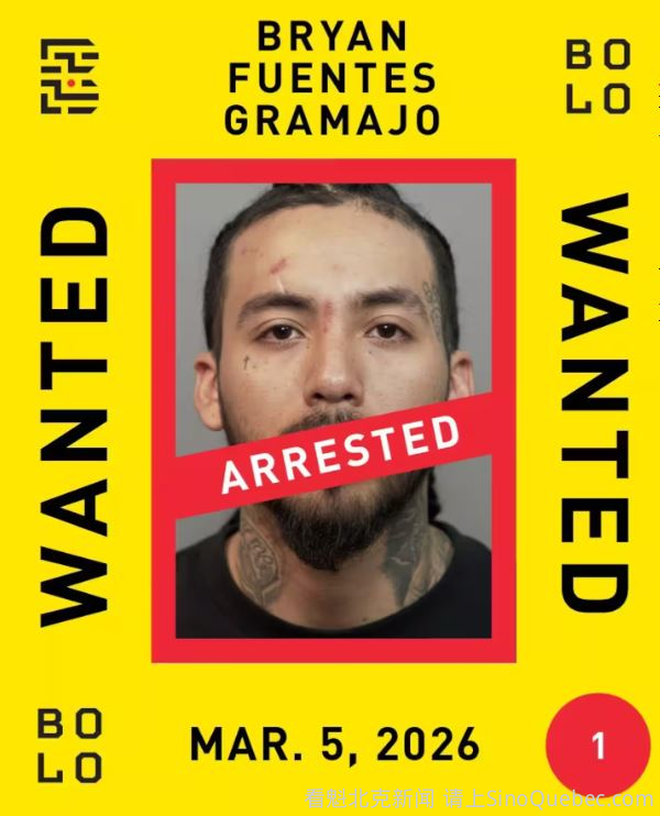 加拿大头号通缉犯 Bryan Fuentes Gramajo 在蒙特利尔被捕。 加拿大最高通缉的逃犯之一 Bryan Fuentes Gramajo 于昨天夜间在 Montréal 被逮捕。 这名24岁男子因在7月实施枪击谋杀案而被多伦多警方通缉。 他在 Rosemont–La Petite-Patrie 区被蒙特利尔警方SPVM逮捕。 SPVM 公告称,他预计将在今天周四下午于蒙特利尔法庭出庭。