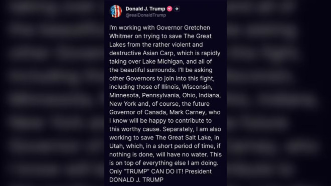 美国总统唐纳德·特朗普(Donald Trump)周二在其社交平台“Truth Social”上发文,把加拿大总理卡尼(Mark Carney)称为“未来的加拿大州长”。 CP24消息:特朗普的这条帖文是在谈到与美国各州州长合作、共同“拯救五大湖免受相当暴力且具有破坏性的亚洲鲤鱼(Asian Carp)侵害”时提到卡尼的。 ![]() 这已经不是特朗普第一次把加拿大总理称为“州长”。 今年1月,特朗普在Truth Social上谈到中国可能与加拿大达成贸易安排时,也曾这样称呼卡尼。 ![]() 他写道:“如果卡尼州长(Governor Carney)认为他可以把加拿大变成一个让中国向美国运送商品和产品的‘卸货港’,那他就大错特错了。” 面对特朗普的这番嘲讽,当时卡尼回应说,他不会对每一条“推文”、或每一条“Truth”,或者任何人的评论都作出回应。 卡尼还表示:“我能应付得来。”(can handle it) |