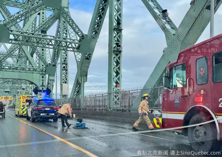 今天早高峰时段,Jacques-Cartier大桥通往蒙特利尔方向发生追尾事故,造成车辆受损并引发严重交通拥堵。 事故约在上午9点发生,地点位于桥面、靠近通往Jean-Drapeau公园的出口。 两辆同向行驶的车辆相撞,疑似因车流减速造成。 事故中无人受伤。 为拖走车辆并清理路面,桥上两条车道一度关闭。 这起事故导致从南岸前往蒙特利尔岛的交通出现严重堵塞。 |
