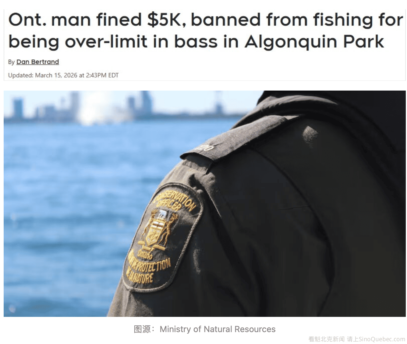 一名多伦多男子因在阿冈昆省立公园(Algonquin Provincial Park)被发现持有73条鲈鱼(bass),超过法定限额67条,被罚款5000加元,并被禁止在安省钓鱼一年。 Mykola Bondaruk承认非法持有超出法定数量67条鲈鱼。该案于2025年11月17日在彭布罗克(Pembroke)由治安法官Jennifer L. Grant审理。除了5000加元罚款外,Bondaruk还被禁止在安省参与任何与钓鱼有关的活动一年。 执法人员在湖上发现违规 法庭获悉,2025年8月21日,自然资源部的保护官在阿冈昆省立公园的Sec Lake进行巡查时,发现Bondaruk正从一艘rowboat船上钓鱼。 安省自然资源部在法院公告中表示:“执法人员在水上检查时发现,Bondaruk持有38条大小口黑鲈(largemouth 和 smallmouth bass)。” 该湖位于渔业管理区15(Fisheries Management Zone 15)。根据规定,大口黑鲈和小口黑鲈合计的休闲钓鱼持有上限为6条。 在最初检查之后,执法人员前往Bondaruk位于湖边的露营地。 自然资源部表示:“在Bondaruk的湖边营地,执法人员在冷藏箱、袋子和锅中又发现了35条鲈鱼。” 最终,Bondaruk持有的鲈鱼总数达到73条。 省府强调保护渔业资源 安省自然资源部借此案件提醒公众遵守钓鱼规定,尤其是在面积达7635平方公里、广受户外活动爱好者欢迎的阿冈昆省立公园。 自然资源部保护官Ron Arnold在配合法院公告发布的一段视频中表示:“安省的渔业受到严格监管,以确保物种得到保护和可持续发展,同时也让人们有机会创造终生难忘的回忆。” 他补充说:“请尊重我们的渔业资源并遵守相关规定。” Arnold表示:“需要指出的是,数以百万计的游客和居民都在遵守这些法律。” 如果发现自然资源问题或提供未破案件线索,公众可以拨打自然资源部举报热线1-877-847-7667,或匿名联系Crime Stoppers。 |
