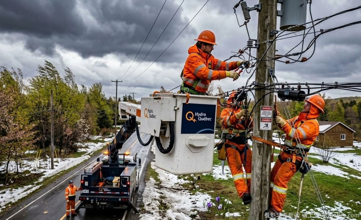 由于强风影响,今天早上魁北克省超过 310,000户家庭停电,这些停电都是由 Hydro-Québec 电网受损造成的。 根据 Hydro-Québec 最新数据,截至上午10点,全省共有 311,056户地址停电。 Hydro-Québec 表示,目前强风正席卷全省大部分地区,阵风普遍可达 90公里/小时,局部地区可达 120公里/小时,导致电网出现多起停电。 受影响最严重的地区为: * Montérégie:93,952户 * Lanaudière:63,309户 * Laurentides:35,829户 * Capitale-Nationale:26,623户 此外,Laval 有17,829户停电,蒙特利尔有21,328户,Outaouais 有11,454户。Centre-du-Québec(9,339户)、Chaudière-Appalaches(7,961户)以及 Mauricie(7,503户)也有较多家庭受影响。 Hydro-Québec 表示,已有超过 1,100名工作人员在现场部署,安全开展抢修工作,并尽快恢复供电。 天气方面,强风伴随阵风可达 120公里/小时,同时预计周二会有阵雪和强风。 联邦气象局预计,大部分魁北克地区上午将有 50至60公里/小时的阵风,局部可达 90公里/小时。 强风天气还将伴随局部的雨或雪。 气温则会下降,预计会回落至冰点以下。