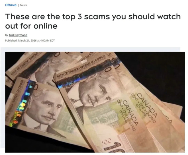 诈骗越来越“高级”了:加拿大最新预警,这3类骗局最常见,很多人正在中招! 每年3月是“防诈骗宣传月”,但现实情况是——诈骗不仅没有减少,反而越来越难识别了。 加拿大商业改进局(BBB)最新提醒,目前最常见、最容易让人中招的,其实就三类:购物诈骗、求职诈骗、钓鱼诈骗。而且随着AI技术的发展,这些骗局正在变得越来越“像真的”。 ![]() 先说最常见的——购物诈骗。 现在很多人网购,基本都会刷到社交媒体广告,比如Facebook、Instagram上那种“限时优惠”“超低价”“一天送达”。但问题是,这类广告里藏着不少陷阱。典型特征就是:价格明显低于市场价,甚至“便宜一半”。 这里面有几个特别明显的危险信号: