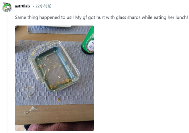 近日,一位加拿大网友在Reddit论坛发帖称,自己从Costco购买的一款Elo品牌玻璃餐盒,在正常使用过程中突然发生“爆炸”。 从该网友晒出的照片可以看到,餐盒已经完全碎裂,玻璃碎片散落在桌面上,原本装着的米饭和食物也被“炸”得到处都是。 ![]() 图源:reddit 发帖者补充说:“午餐是从冰箱里(冷藏)拿出来的,放了15分钟后,用微波炉加热了3分钟。拿出来大约10分钟、正在吃的时候突然就炸了。从来没有放进过冷冻。” ![]() 更令人震惊的是,这并非个例。 在评论区,许多网友表示自己也遇到过类似情况,甚至有人因此受伤: “同样的事情也发生在我们身上!!我女朋友在吃午饭时被玻璃碎片划伤了!” ![]() “我也遇到过。我还被玻璃碎片扎伤了手,不得不去医院。我填了份表格,Costco说他们的法务团队会联系我。这都6个月过去了,到现在还没联系我。” ![]() “我的3个Elo饭盒都炸了。Costco给我退款了,还说应该会接到电话通知召回事宜。” ![]() “我们在1月份也遇到了同样的情况。12月初买的,大概用了一个月。放进微波炉加热了90秒,然后过了大约一个小时,就放在桌子上……突然就炸了。我马上拿去Costco退货,他们很爽快地就给我退了,帮我办理退货的店员说她自己的也发生过同样的情况。这倒不是Costco的问题,肯定是那个牌子(Ello)的问题,我已经联系过厂家了,但一直没有回应。” ![]() 还有不少人提到,这款产品在澳大利亚已经被召回,但加拿大这边却没有任何信息:“这款产品在澳大利亚已经被召回了。” ![]() “我有两个饭盒都炸了——剩下的我都拿去Costco退了,不会再买了。看到了澳大利亚的召回通知,很惊讶加拿大这边没有召回。” ![]() “这显然是Costco的问题,这些产品在其他地方也已被召回。” ![]() 值得注意的是,不少网友指出一个共同点:这些玻璃餐盒,往往不是在微波炉里碎掉,而是在“吃饭的时候”突然爆裂,让人猝不及防。 ![]() 目前来看,该品牌的玻璃餐盒在加拿大Costco仍正常销售,暂无官方召回公告。 ![]() 图源:Costco.ca 如果你家中也有类似的玻璃餐盒,在使用时注意多留一分警惕。 |
