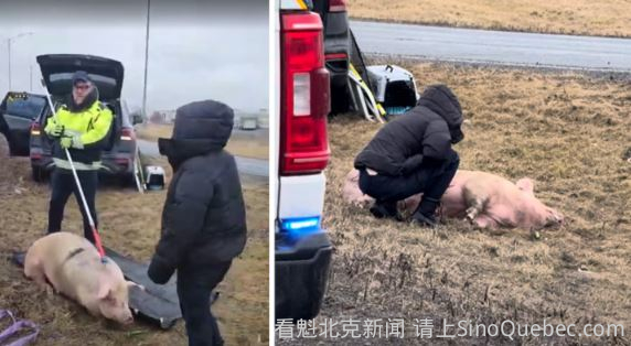 昨天周二,在蒙特利尔南岸Brossard,两头猪从运输拖车上掉落,需要由动物保护官员进行救援。 事件发生在30号高速,靠近10号高速立交桥处,导致该路段临时封闭。 警方在下午12:40左右请求Sauvetage Animal Rescue的协助,以处理这两头无法移动、倒在地上的猪。 志愿者们使用带子和毯子将猪转移到拖车上。 发言人在发给CTV新闻的邮件中表示:“虽然操作相对简单,但成年猪体重可达约500磅,因此我们派出了四辆车和四名救援人员。” 这些猪原本正运往屠宰场,最终仍被送往屠宰场处理。 Sauvetage Animal Rescue表示,这次救援是由他们“敬业”的志愿者免费提供的。 |