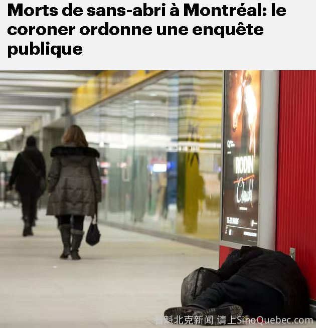 魁北克首席验尸官Reno Bernier今天周三宣布,将对蒙特利尔近期多起无家可归者死亡事件展开公开调查,以查明真相。 “无家可归者的死亡人数在上升……每一条生命都重要,因此必须彻底查明这些死亡的原因和情况,以防止类似事件再次发生,”Bernier先生表示。 此次调查由验尸官Stéphanie Gamache领导,重点关注2025年9月至2026年3月间的五起死亡案件,包括Jennifer De Nobile(30岁)、Marie Soleil Nantais(46岁)、Valmont Brousseau(71岁)、Alain Paris(55岁)和Serge Martin(57岁)。 调查将审查这些事件的原因和情况,识别促成因素,并提出防止未来死亡的建议。验尸官也可将分析范围扩大到同期在类似情况下死亡的其他案例。 蒙特利尔市长Soraya Martinez Ferrada几天前的呼吁,是此次公开调查的导火索。 市长在发布会上宣布,上周两名无家可归者Valmont Brousseau(71岁)和Serge Martin(57岁)在收容所中去世。 她哭着表示自己对现状感到“无力”,并向其他政府层级发出求助:“我要向其他政府层级传达的信息是,蒙特利尔需要帮助。”