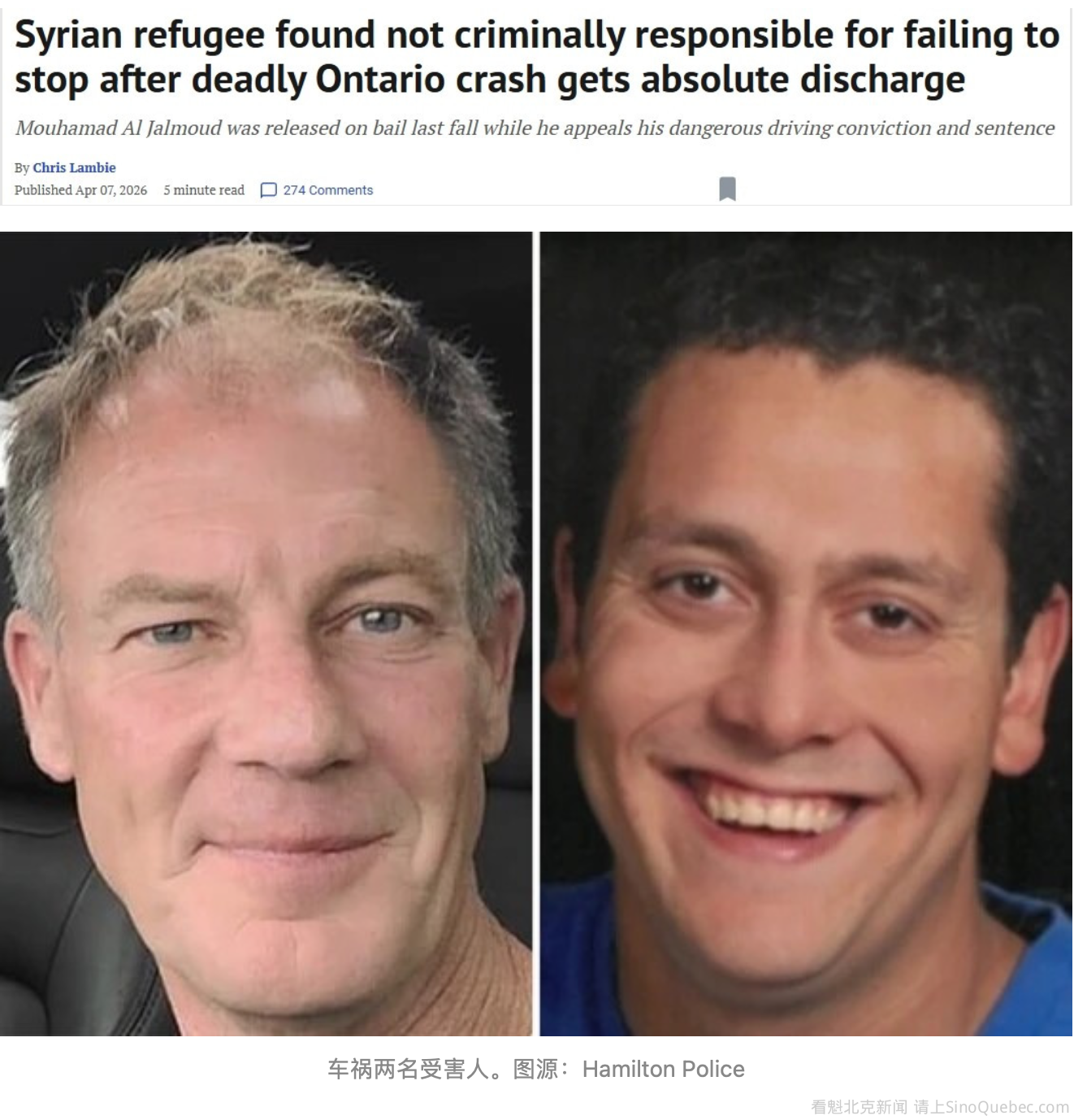 一起致命车祸,两个生命逝去,本是再清晰不过的案件,却在判决结果公布后引发巨大争议。一名无证司机撞死两人后逃逸,最终却被判"无刑责",并获保释,这让人质疑:这样的判决,究竟在保护谁? 一名因精神障碍被判不负刑事责任的叙利亚难民,在涉及安省致命车祸并未停车的案件中,近日获无条件释放。安省复审委员会表示,他"目前已不构成对公共安全的重大威胁"。 该男子去年秋天已从监狱获释,正就这起致命车祸的其他相关定罪提出上诉。 据悉,涉案司机名为Mouhamad Al Jalmoud,他驾驶一辆黑色福特Escape,于2022年9月在安省汉密尔顿与一辆现代Sonata相撞,导致现代车内两名乘客当场身亡,司机也受重伤。 没有驾照,从未上过路 复审委员会在最新裁决中提到,事发时Al Jalmoud"没有有效驾照,自2018年来到加拿大后也从未在此驾驶过车辆"。他在上月听证会中还需要阿拉伯语翻译。 裁决书显示,警方在致命车祸前曾注意到这辆福特Escape"在车道间穿梭,车速时快时慢"。 当时Al Jalmoud在一个路口遇到红灯停车,绿灯亮后却未起步。警方见状,下车准备查看司机情况,担心其分心或受影响。就在警方下车时,Al Jalmoud驾车逃离现场。 他随后一路向北行驶,再次闯红灯,与现代车发生猛烈碰撞。 裁决书称,强烈撞击使现代车"失控旋转"。车内乘客John Wignall被甩出后座窗外,撞上建筑物,现场不治身亡。另一名乘客Ryan Valentim被送医后不久宣告死亡。现代车司机Hardick Patel也被送往医院,伤势"非常严重"。 事故发生后,Al Jalmoud曾短暂逃离现场,之后返回并倒地,被送往汉密尔顿综合医院。 2024年12月,陪审团裁定Al Jalmoud因精神障碍,在三项肇事后未停车的指控上不负刑事责任。 但同一陪审团也认为他"危险驾驶致死两项罪名,及危险驾驶致身体伤害一项罪名成立"。 法官于去年3月判处他3年3个月监禁。 不过,Al Jalmoud仅服刑约6个月,因"已对定罪及判决向安省上诉法院提出上诉,目前尚未确定上诉日期",被准许保释。 他于2025年9月24日从Collins Bay监狱获释,等待上诉结果。复审委员会指出,"上述事项仍在法院审理,超出本委员会权限"。 Al Jalmoud在保释期间需遵守多项条件,包括必须由父亲陪同外出。 据陪审团审理时披露,Al Jalmoud童年时期亲历叙利亚内战的恐怖,包括空袭、街头杀戮、大规模随意逮捕和酷刑。他本人也曾遭受酷刑,因而对警察和军方产生恐惧。其家人逃往黎巴嫩难民营,也遭遇虐待。 Al Jalmoud 16岁时以难民身份随家人来到加拿大。 创伤后应激障碍(PTSD)触发车祸 在刑事审判中,两名精神科医生证实,2022年9月25日出事当晚,Al Jalmoud患有创伤后应激障碍(PTSD),与警方接触后进入解离状态,直到数小时后在医院苏醒。他们一致认为,Al Jalmoud当时并不掌控自己的行为,虽然能够驾驶,但意识模糊,无论是逃避警方还是撞车后都未察觉自己所作所为。两位专家均认定,他因精神障碍对肇事未停车行为不负刑事责任。 去年,另一位精神科医生为复审委员会对Al Jalmoud进行风险评估时表示,他没有主要精神疾病、反社会特征或药物滥用等危险因素。 裁决书指出,"证据显示他对自己造成的悲剧事件感到悔意"。 委员会引用BC省法院一项判例,强调"重大风险"应为"对公众成员造成实质性身体或心理伤害的现实风险,而非琐碎或烦扰"。导致伤害的行为必须具有刑事性质。 去年为Al Jalmoud做评估的精神科医生还补充,虽然事故声响可能成为PTSD触发因素,但单凭声响不足以导致他逃离现场。他也未被要求就刑事责任发表意见。 该医生表示,自己对案发时精神障碍是否导致免罪持不同观点,认为Al Jalmoud驾车本就不具备技能,见警察后因无驾照而惊慌,才做出错误决定最终酿祸。 不过,这名医生也明确表示,"目前Al Jalmoud不构成对公共安全的重大威胁"。 复审委员会最后总结,案发时年仅20岁、现年24岁的 Al Jalmoud,"展现出重视家庭、无药物滥用、积极向上的价值观"。尽管案发当天存在无证驾驶等反社会行为,但"类似情况未来再度发生的可能性极低"。 针对这一事件,网友一片哗然: ”加拿大人的生命很廉价。“ “‘……自2018年入境以来,他甚至从未在加拿大驾驶过车辆,’这也算是加拿大的司法? ”显然,他是在杜鲁多当年叙利亚难民潮来到这个国家的。而现在,如果按照报道中描述的司法逻辑,我们这个社会将不得不承受那些声称受到该国内战心理影响的人所带来的各种问题和后果。不过,人们不禁要问,把这些人留在他们自己的地区、而不是让他们面对迁入完全陌生文化所需的巨大适应,是否会更好?“ ”我对这个国家更加感到厌恶了。“ |