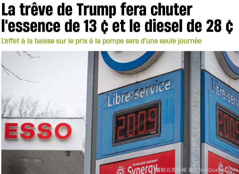 由于特朗普推动的停火协议影响,加油站油价将出现明显下降,预计到明天周五晚上汽油和柴油价格将大幅下跌,但这种缓解将是短暂的。 “继今天周四下降2分后,汽油价格周五预计还将再降13分,”专家 Dan McTeague 表示。 他建议消费者明天周五加油,因为预计从周六开始油价将再次温和上涨。 McTeague还建议卡车司机等到周五再加油,因为柴油价格将在24小时内下降28分。 “这前所未见。通常最多下降5到10分,但从未一次性下降28分。” 他指出,对于容量1000升的油箱,一次加油最多可节省280元。 周四价格仍高 在价格下跌前,魁北克各地今天周四油价仍然偏高。 根据能源局数据,今天周四早上蒙特利尔普通汽油平均价格为1.995元/升,市中心部分加油站甚至高达2.019元。 在Capitale-Nationale地区,平均价格为1.957元/升。 不过,全省仍有一些较便宜的加油站,例如:
