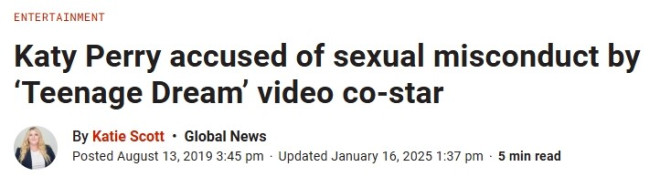 加拿大前总理杜鲁多的女友--Katy Perry(水果姐),最近摊上事了! 虽然杜鲁多已淡出政坛一年多,但两人的恋情始终备受关注。就在近日,一则突发消息引发舆论:Perry被曝卷入一宗发生于20年前的性侵指控,当事人称已向警方报案。 ![]() ![]() 澳大利亚女演员 Ruby Rose 近日指控美国歌手 Katy Perry 近 20 年前在墨尔本夜店性侵自己,Katy Perry 否认。曾在墨尔本 Spice Market 夜店担任经理的人士,近日披露了这一性侵案的更多细节。 Ruby Rose 以出演《女子监狱》和《疾速追杀 2》而广为人知。她于 4 月 12 日周日通过多条社交媒体信息称,近 20 年前曾遭到 Katy Perry 性侵。 现年 40 岁的 Rose 在回应 Katy Parry 对 Coachella 音乐节的贴子上写道:“Katy Perry 在墨尔本的 Spice Market 夜店性侵了我。” ![]() Katy Perry 坚决否认指控 Katy Perry 的代表随后向 Fox News、Variety 和 PEOPLE 等媒体发表声明,坚决否认相关指控,称:“Ruby Rose 在社交媒体上针对 Katy Perry 的指控完全是虚假的,而且是危险、鲁莽的谎言。” 声明还指出:“Rose 在社交媒体上公开指控他人的情况屡见不鲜,被点名者多次否认了这些说法。” ![]() ![]() 图源:instagram 随后,Katy Perry 在个人 Instagram Story 上与 2 亿粉丝分享了自己的 2013 年歌曲《By the Grace of God》,并配文“我爱你们”。 在这首收录于第四张专辑《Prism》中的歌曲里,Perry 唱道:“让宇宙来拆穿谎言。是的,真相会让你自由。” 夜店前经理发声 在接受《Herald Sun》采访时,墨尔本 Spice Market 夜店的一位前经理回忆称,当晚 Rose 和 Perry 都喝醉了,但他并不知晓有任何不当事件发生。 “她们是一起进来的,Katy 还带着她的化妆师和 Ruby 的一位男性朋友,”他对媒体表示,“那天有 600 人,Katy 一直出来和大家跳舞,还跑到人群中央,让安保压力很大。” 据这位前经理介绍,两人晚上大部分时间都待在 VIP 区域内狂欢,他本人没有见到任何异常。 “她们在 Genie Bottle 区喝酒玩乐,主要都在各自做自己的事。我没有注意到任何所谓的性侵,也没人呕吐。”他说。 当晚结束时,两人“就像普通夜店客人那样”,通过单独出口离开。 “她们两人都喝得太多,为了避免被人拍到不雅照,我们安排司机和车辆在酒店 Collins St 入口等候。我们把她们从后门带出,走消防通道送上车。” Rose 对 Perry 的指控详情 在 Threads 的一条帖文中,Rose 声称 Perry “看到我为了躲她,‘靠’在闺蜜腿上休息,然后她俯下身把内裤扯到一边,把她的下体碰在我脸上,直到我猛地睁开眼并朝她呕吐”。 另一条信息中,Rose 表示自己“选择隐瞒”是因为 Perry 当时承诺帮她拿到赴美签证。 “那之后我朝她呕吐。我公开讲过这个故事,但说成了‘醉酒趣事’,因为不知道该怎么处理。后来她同意帮我办美国签证,所以我选择保密。但我确实提醒过大家她不是个好人。结果反而被……所有人攻击。”Rose 写道。 Rose 说自己将近 20 年都没有公开讲述这段往事。 “那时我才 20 出头,现在 40 岁了。直到现在才终于说出来。这也说明创伤和性侵会带来多大影响。谢谢你们看到我。” ![]() 此外,Rose 还公开叫板 Perry,可以提起诉讼。 “(Katy)完全可以起诉我(但她不会,因为这事真的发生了,我有照片,而且还是在公共场合,有多人目击)。而且还有更多事没曝光,都是她不愿被讨论的。她当年的心理操控手段很强。”Rose 表示。 Rose 已向警方报案 在本周二的一条新帖中,Rose 称已就 Perry 的指控向警方报案。 “今天下午,我已经完成所有报案程序。这意味着我不能再公开评论、转发或谈论涉及案件及相关人员。”Rose 在 Threads 上写道。 她说警方的这一要求很常见,“对我来说也算种解脱。” Rose 最后表示,自己现在终于可以“开始疗愈过程”,也能“暂时向前迈进”。 Perry 曾被指控不当行为 ![]() Katy Perry曾在2019年被一名模特指控性行为不当,该模特曾出演她2010年歌曲《Teenage Dream》的音乐视频。Josh Kloss指控这位歌手在一家轮滑场当众暴露他。 “那是在Moonlight Rollerway为Johny Wujek举办的生日派对上。当我看到她时,我们拥抱了一下,她依然是我当时暗恋的人,”他这样描述当时的互动。 “但当我转身准备向朋友介绍她时,她把我的Adidas运动裤和内裤往下拉到极限,向她的几位男性朋友以及周围的人群展示了我的生殖器。你能想象我当时有多羞辱、多难堪吗?” 他声称,Perry的团队曾阻止他公开谈论这一经历。 “我现在之所以说出来,是因为我们的文化正执着于证明有权势的男性是堕落的,”Kloss写道。“但拥有权力的女性同样令人作呕。” Perry在2020年8月接受《卫报》采访时回应了针对她的性行为不当指控。 “我们生活在一个任何人都可以随便说话的世界,”她表示。“我不想说‘有罪推定’,但现在缺乏制衡机制:一个标题就能迅速传播,对事情本身却没有调查。” Perry表示,她此前没有回应这些指控,是因为不想“让噪音变得更大”。 “我不会对所有关于我的言论逐一回应,因为如果我去追逐这些事情,我的一生都会陷入对真假不断辩解之中。这会分散对真正运动的关注,”她补充道,并提到了#MeToo运动。 |