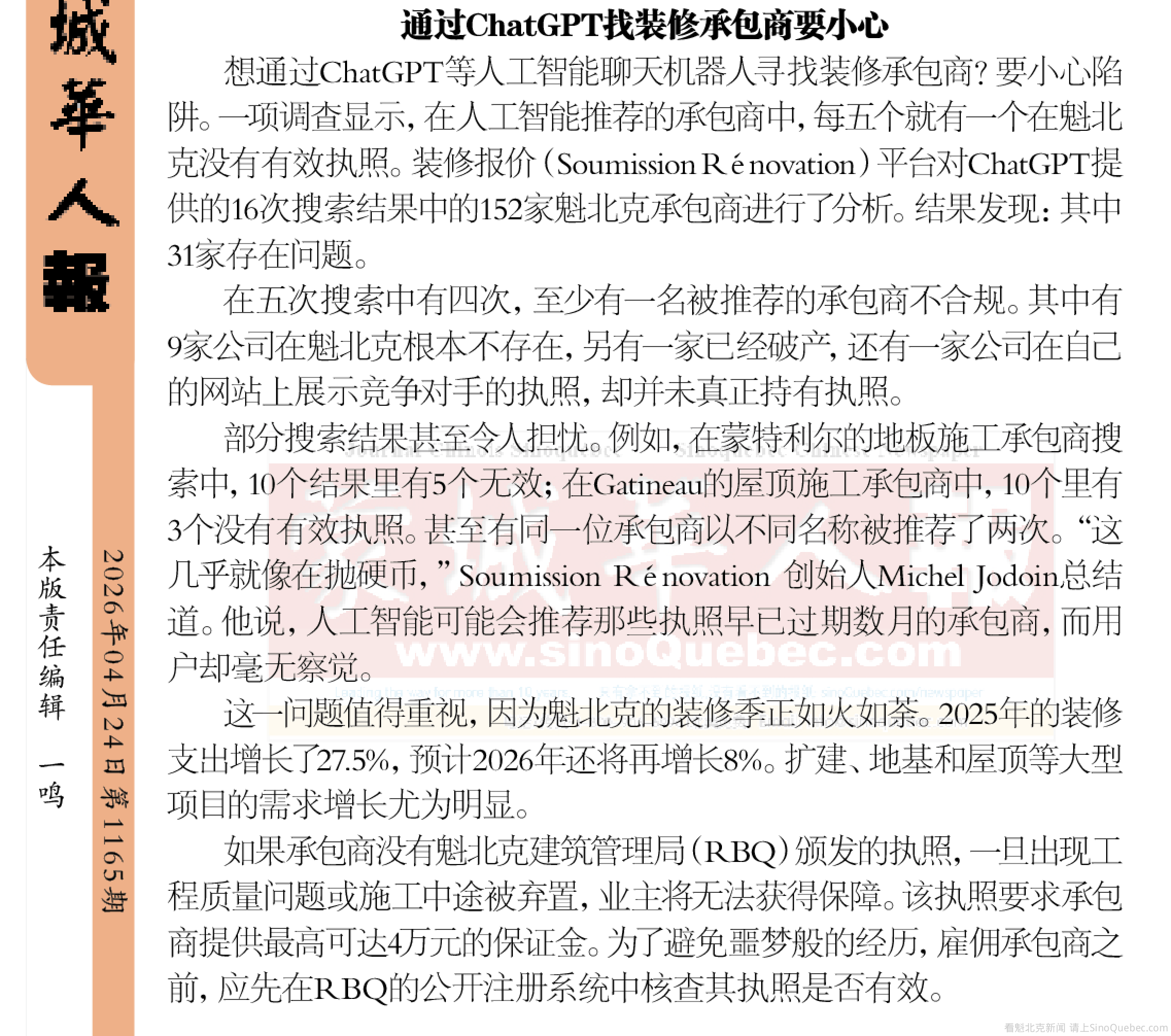 Copyright © 1999 - 2026 by Sinoquebec Media Inc. All Rights Reserved 未经许可不得摘抄 | GMT-4, 2026-4-26 11:35 , Processed in 0.129596 second(s), 23 queries .