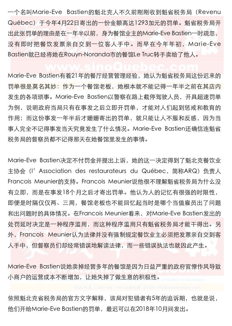 按照魁北克省税务局的统计,自2010年政府明文规定魁省餐饮业主必须为消费者出具发票以来,该局因为收取违规罚金而增加的收入达到9亿2千万加元。魁省税务局预计从现在开始到2018至2019财政年度,此项“创收”总计会超过21亿加元。